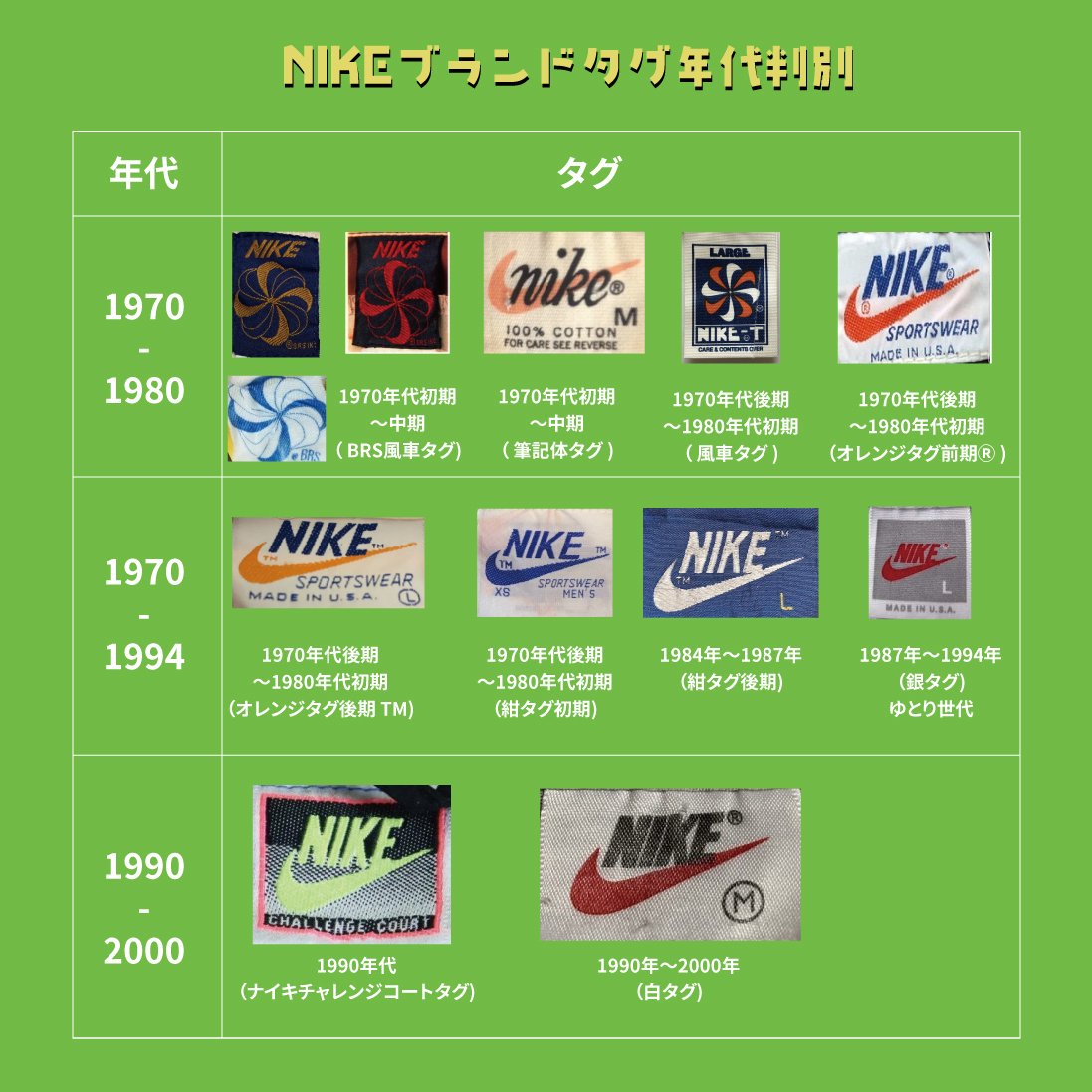 ヴィンテージのナイキ製品を手に取った際、最も重要な手がかりとなるのがタグです。タグのデザインや表記から、おおよその製造年代を推測することができます。