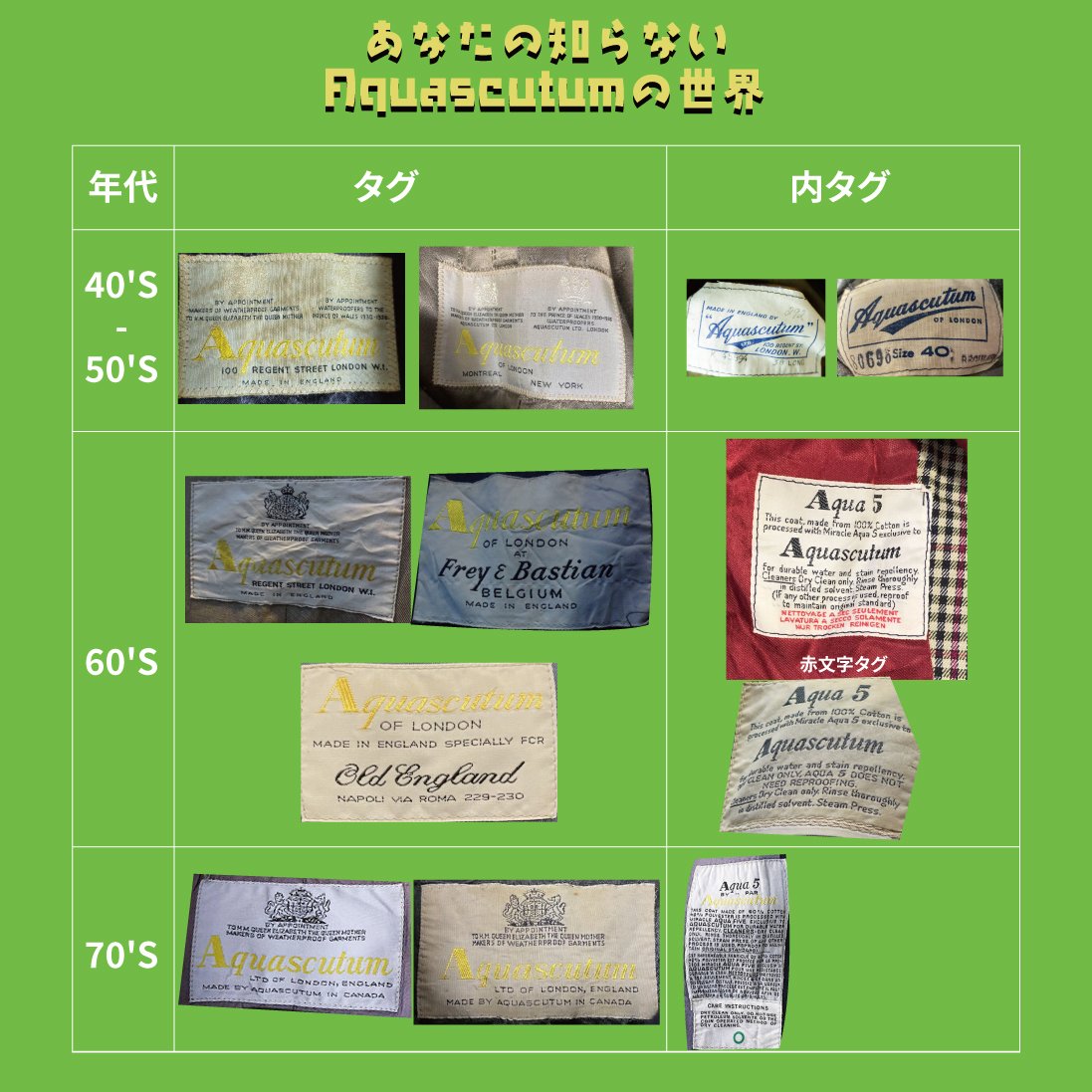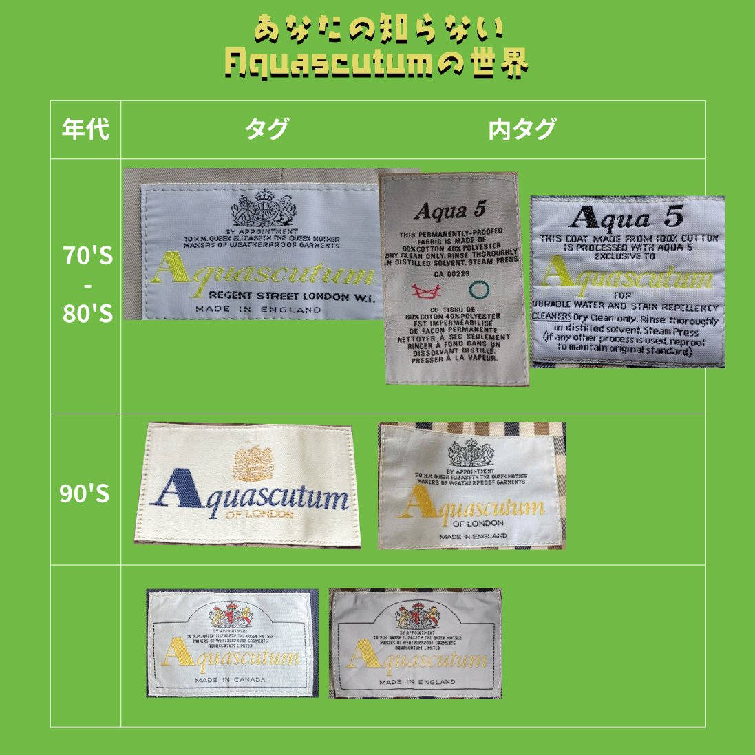 ヴィンテージのアクアスキュータムを手に入れる際は、今回ご紹介したタグの見分け方をぜひ参考にしてみてください。タグが語る物語を読み解くことで、その一着が持つ深い歴史と魅力を感じられるはずです。