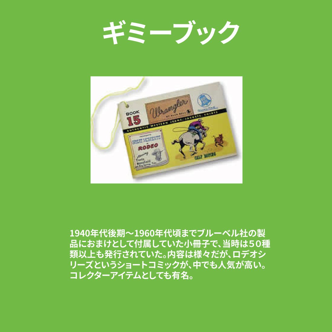 ラングラーのヴィンテージジーンズを購入すると、かつては小さな冊子が付いてきました。これが「ギミーブック」。「Gimme Book(本をちょうだい)」という呼びかけが由来とされています。ロデオチャンピオンの物語や製品情報をコミック形式で紹介しており、ヴィンテージの年代を特定する貴重な資料としても重宝されています。