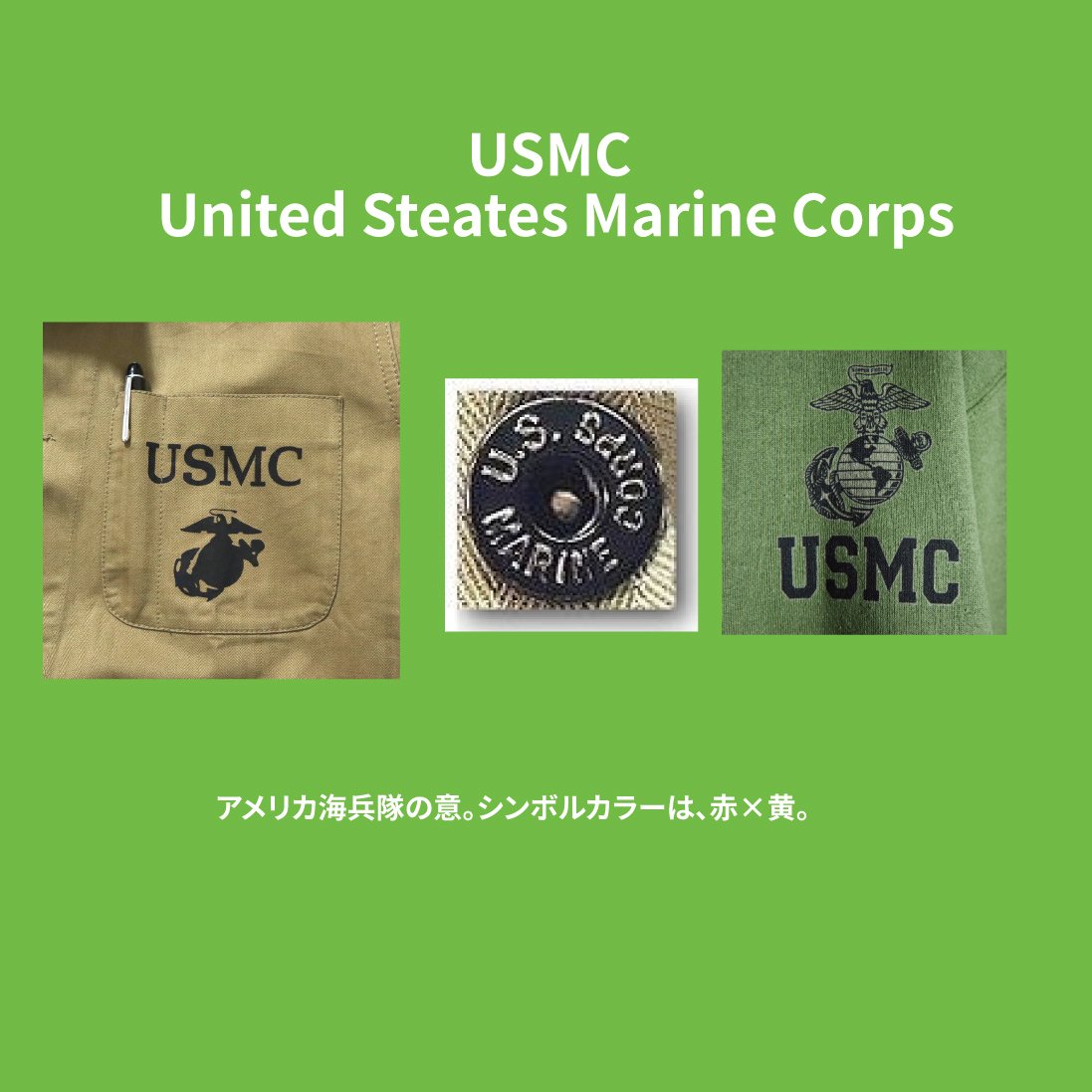 古着屋さんのミリタリーコーナーに行くと、タグやワッペンに「USMA」「USAF」「USMC」って書かれているアイテムをよく見かけますよね。