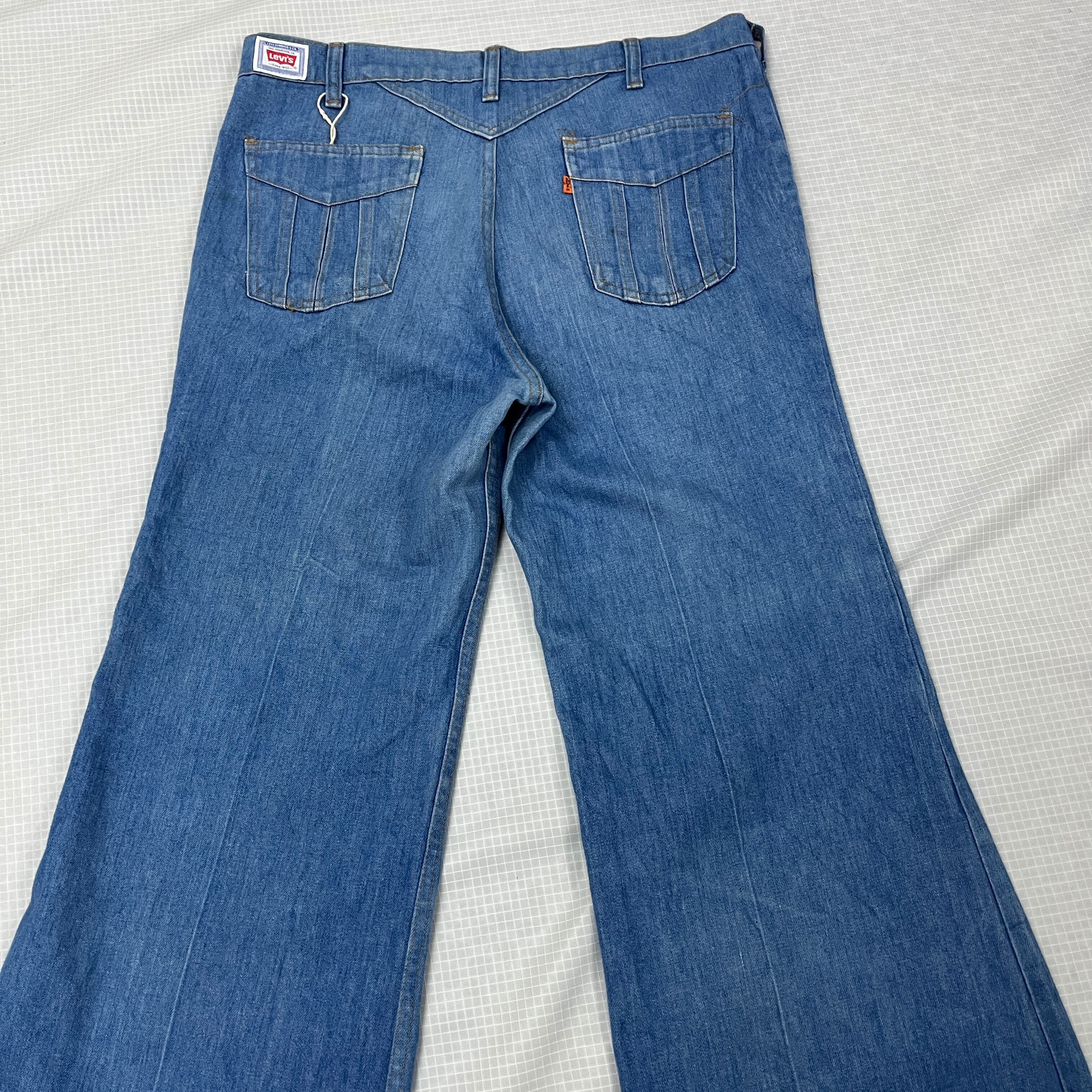 1970年代のヒッピーカルチャーを象徴する、リーバイスのベルボトムジーンズです。こちらは、希少なオレンジタブのついたモデルで、品番はベルボトムシルエットを示す「20606-5015」と記載されています。