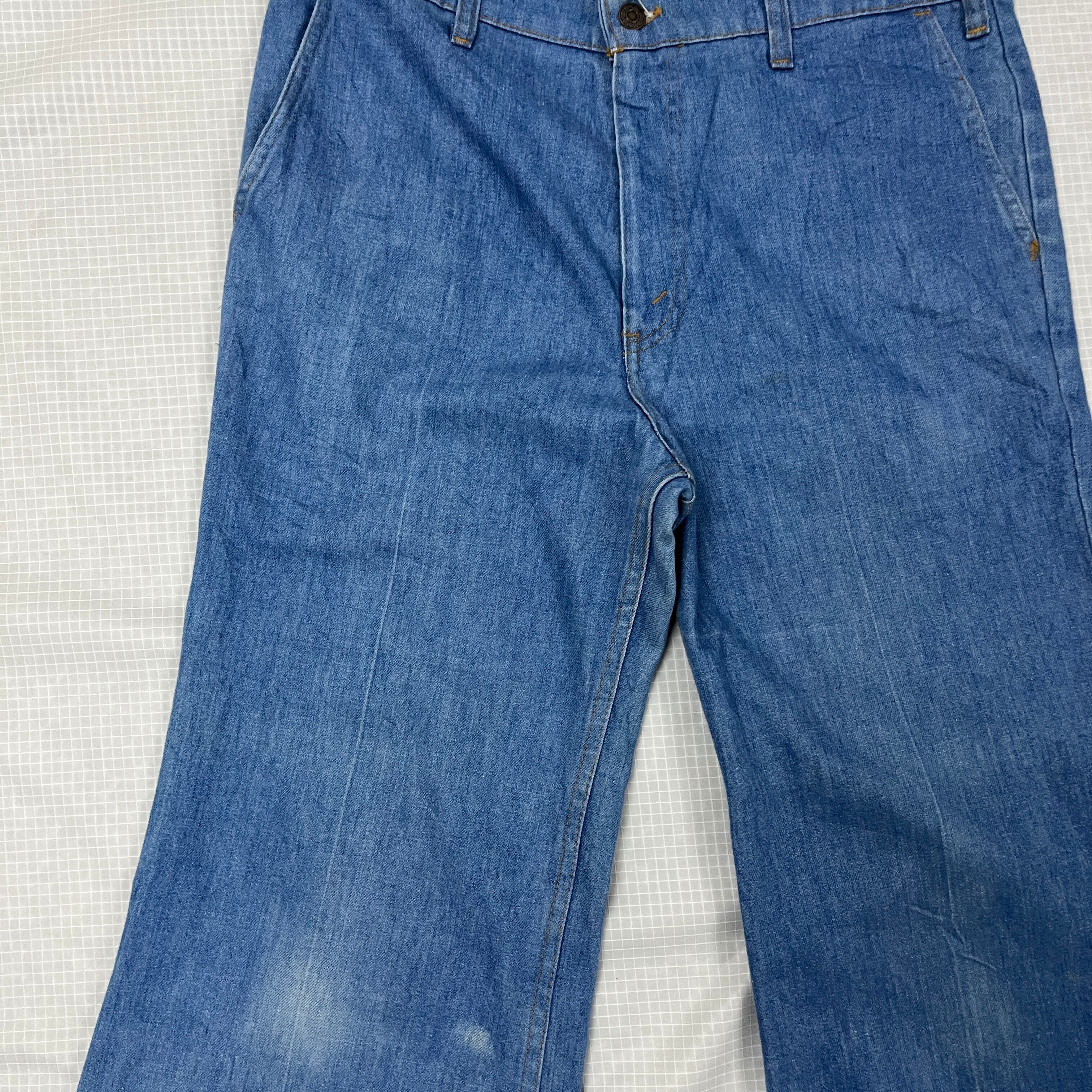 Embodying the spirit of the 1970s hippie culture, these vintage Levi's bell bottom jeans are a true statement piece. This rare model features the iconic orange tab and the product code "20606-5015," which is specific to this bell bottom silhouette.