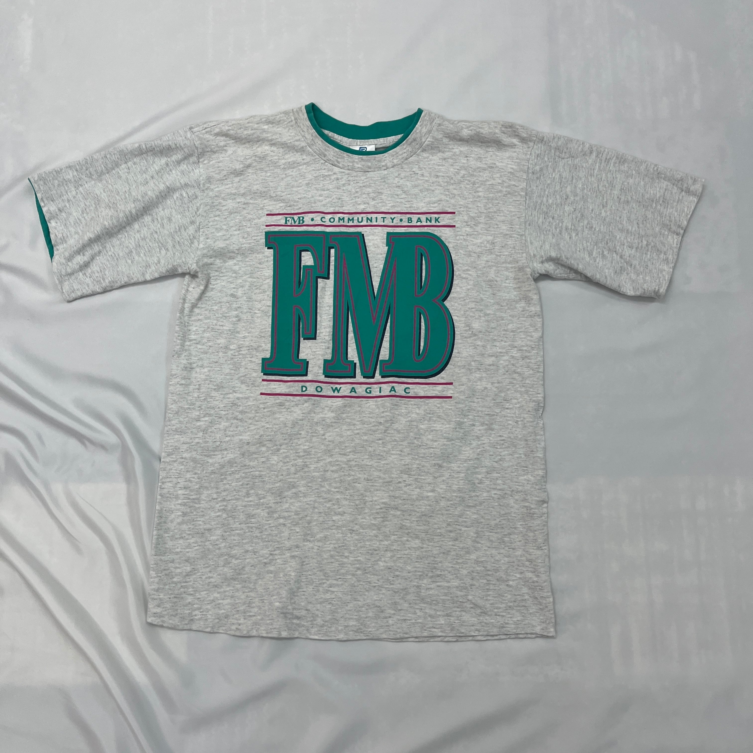 100%コットン製、FMBコミュニティバンクのグラフィックTシャツ、Lサイズ。