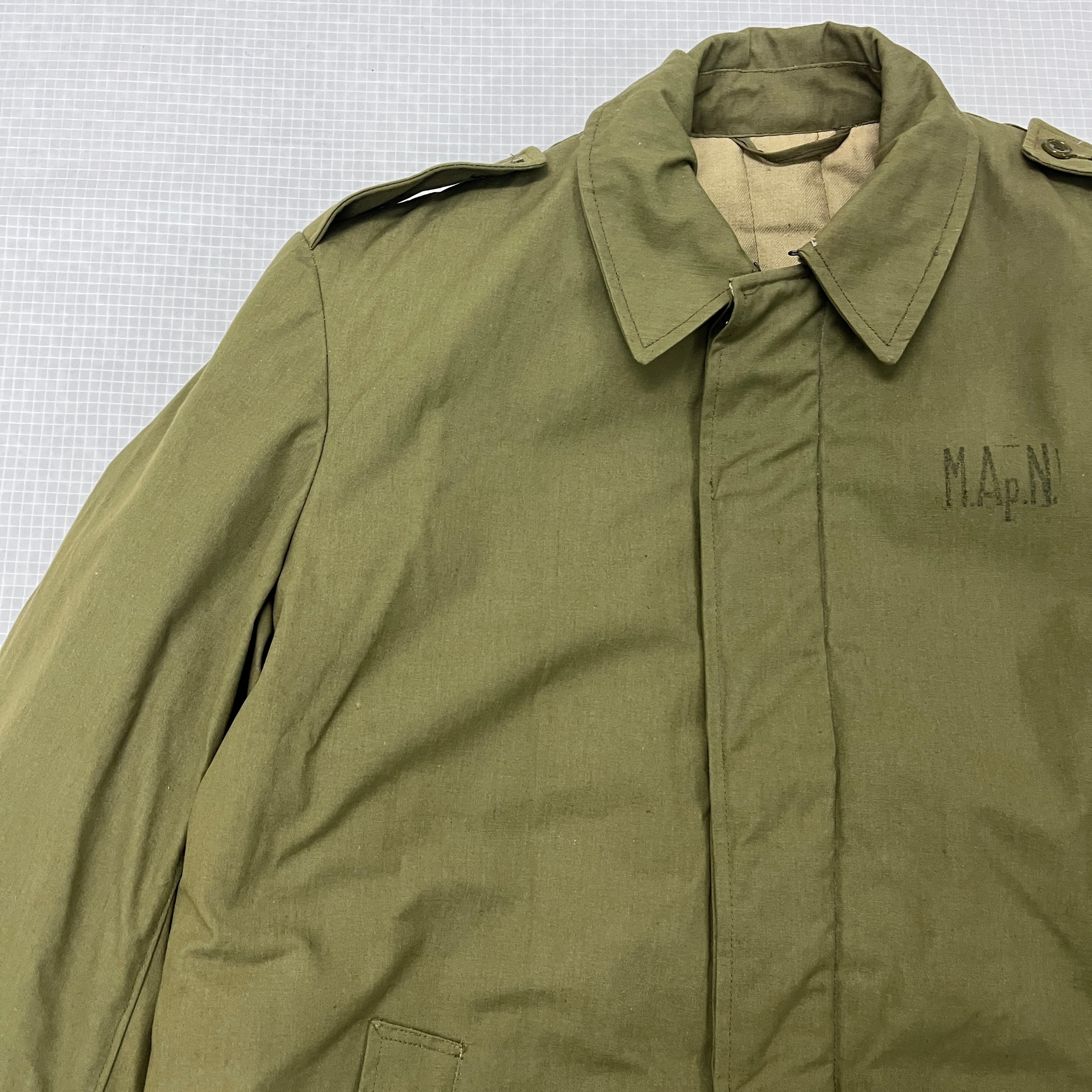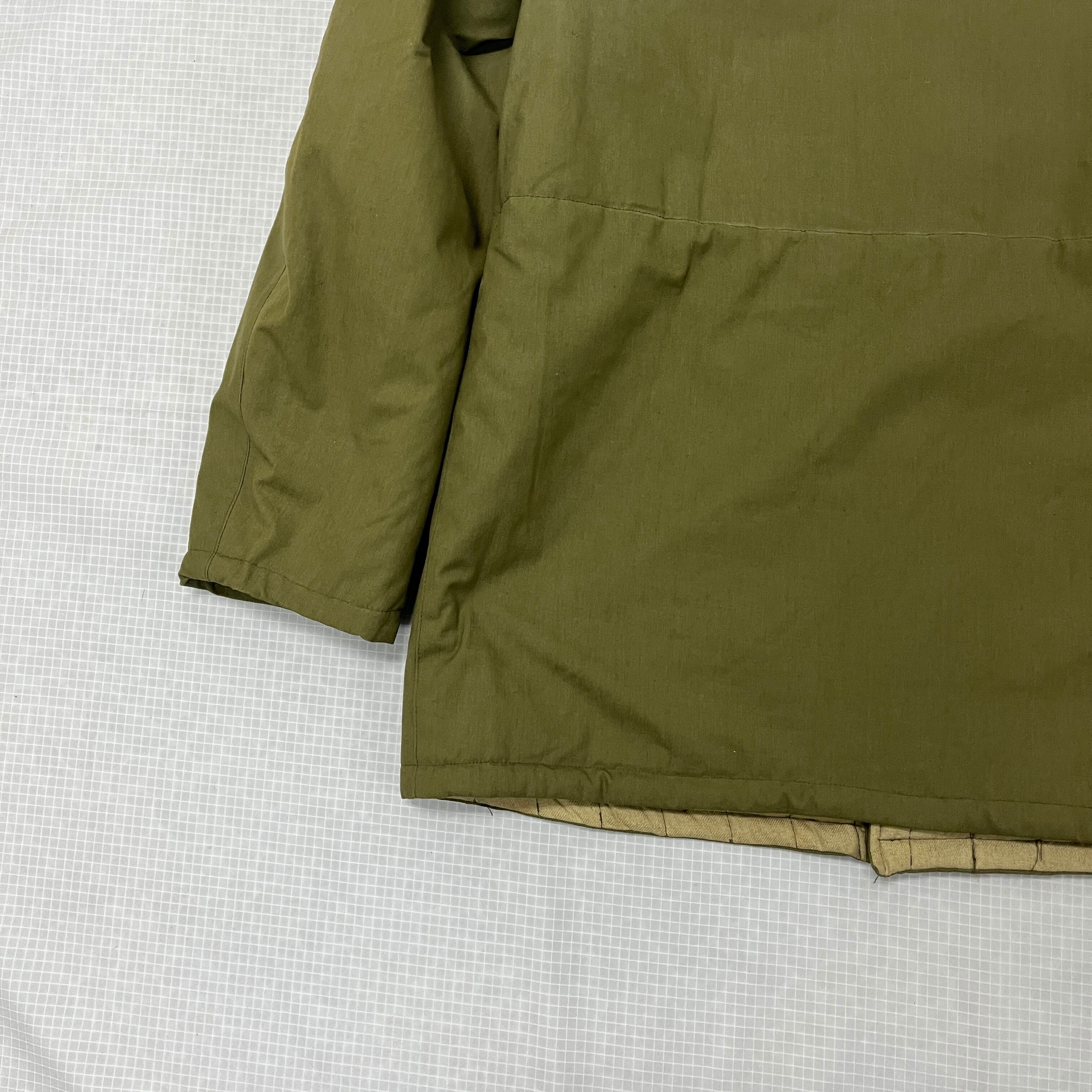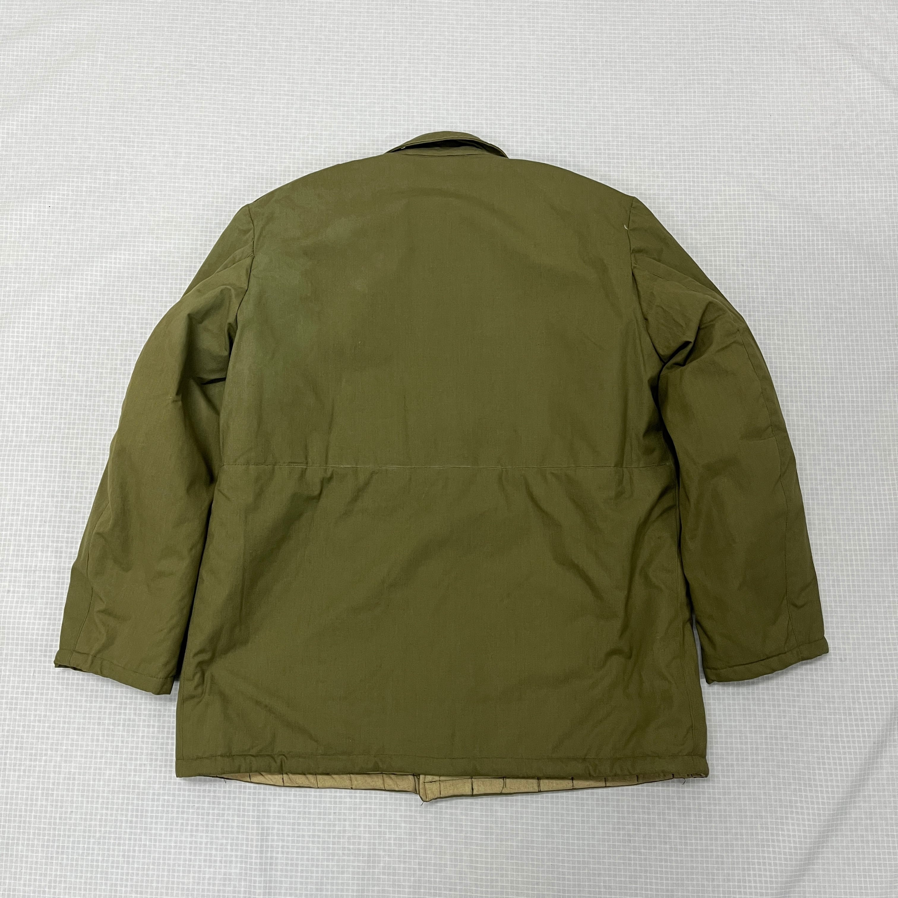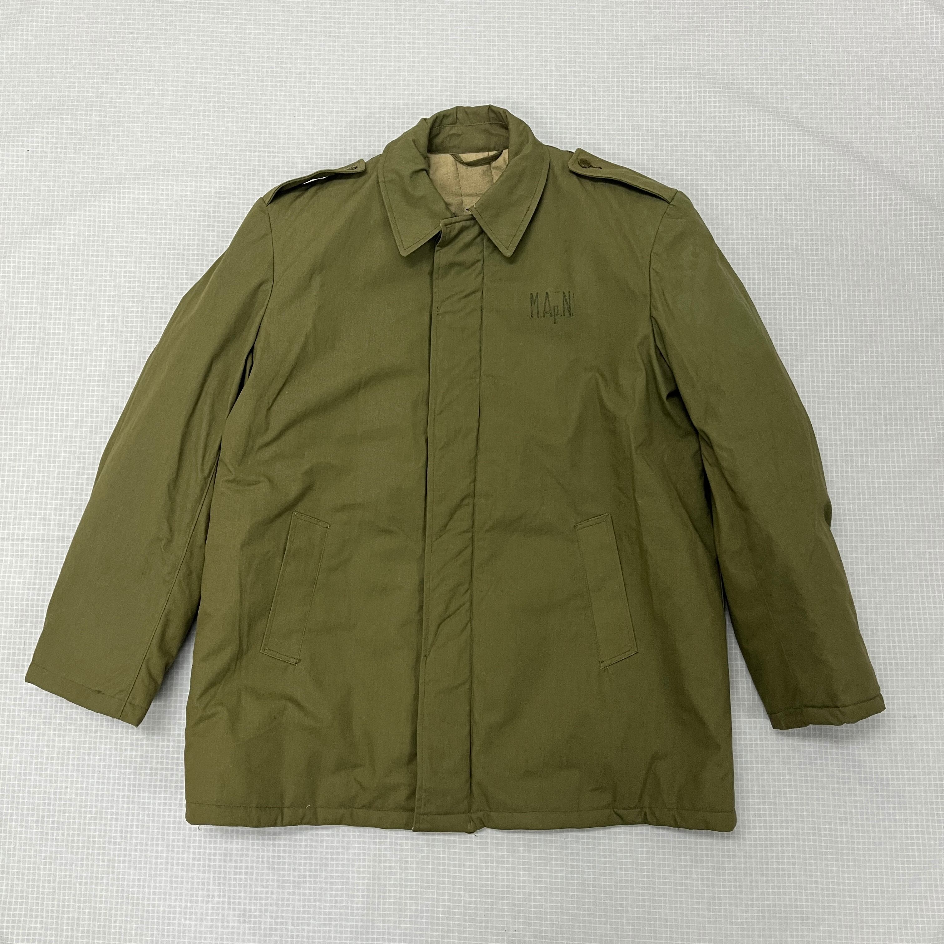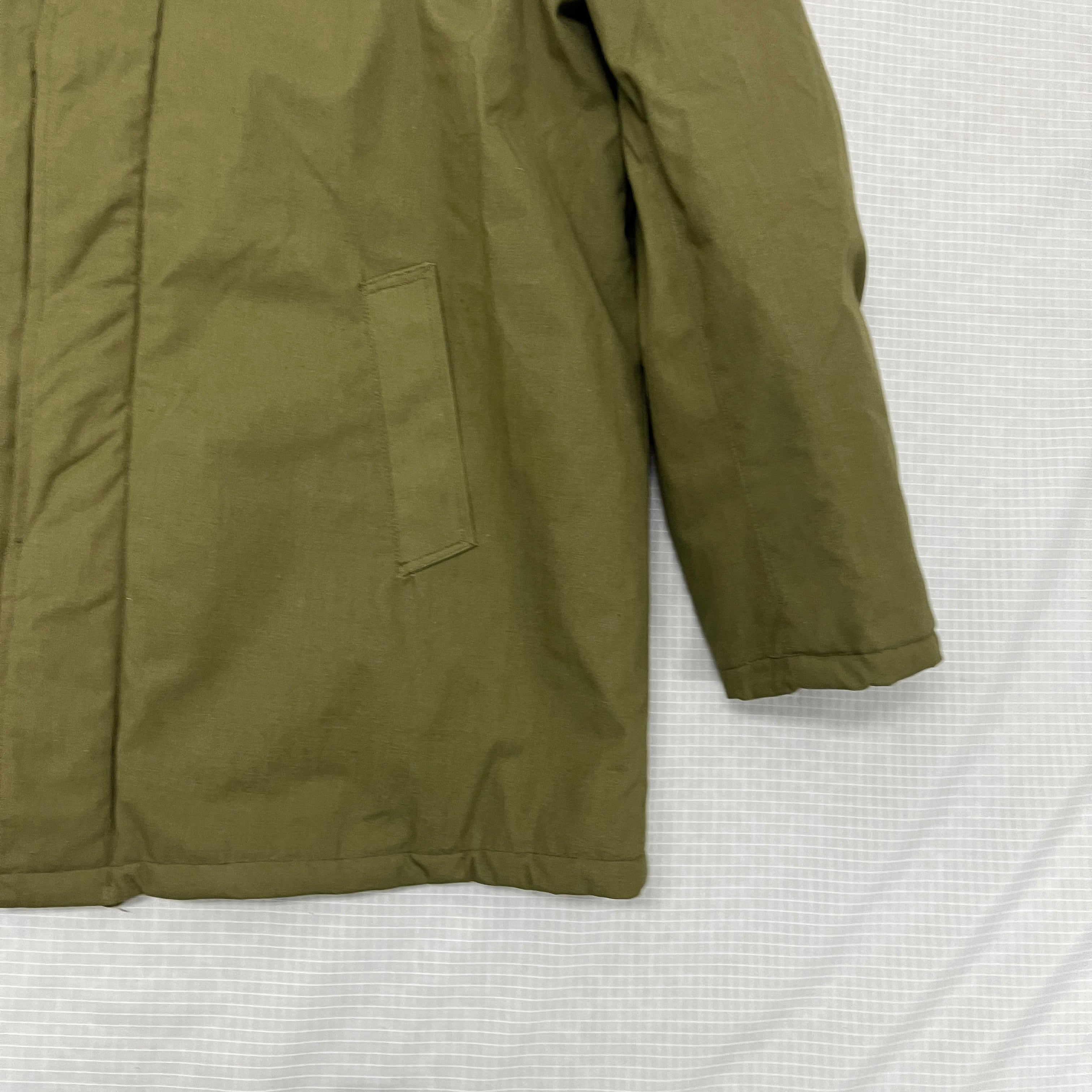 シンプルながら裏地のキルティングが特徴的なデザインで、タウンユースからアウトドアまで幅広く活躍する実用的なミリタリーコートです。