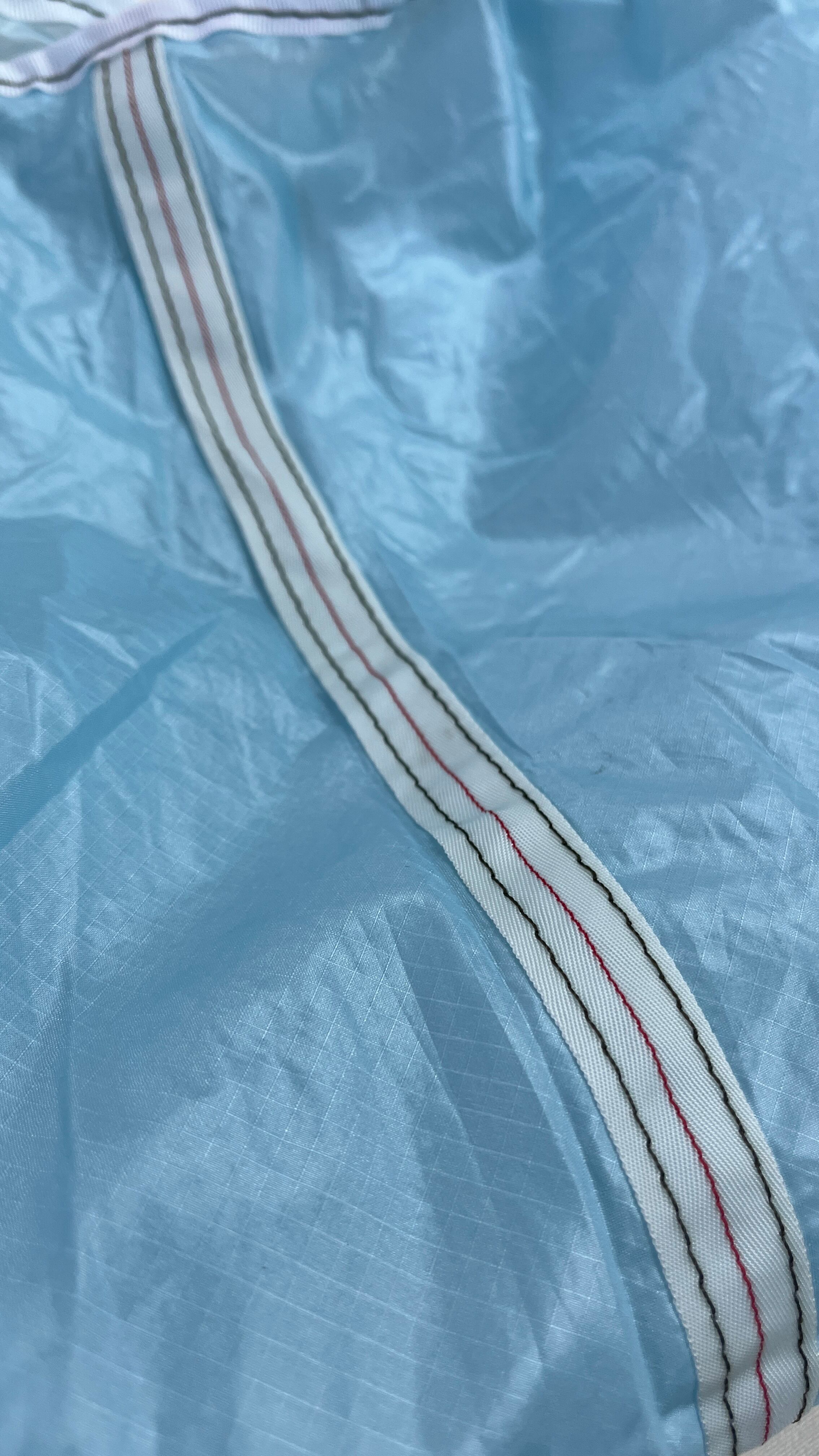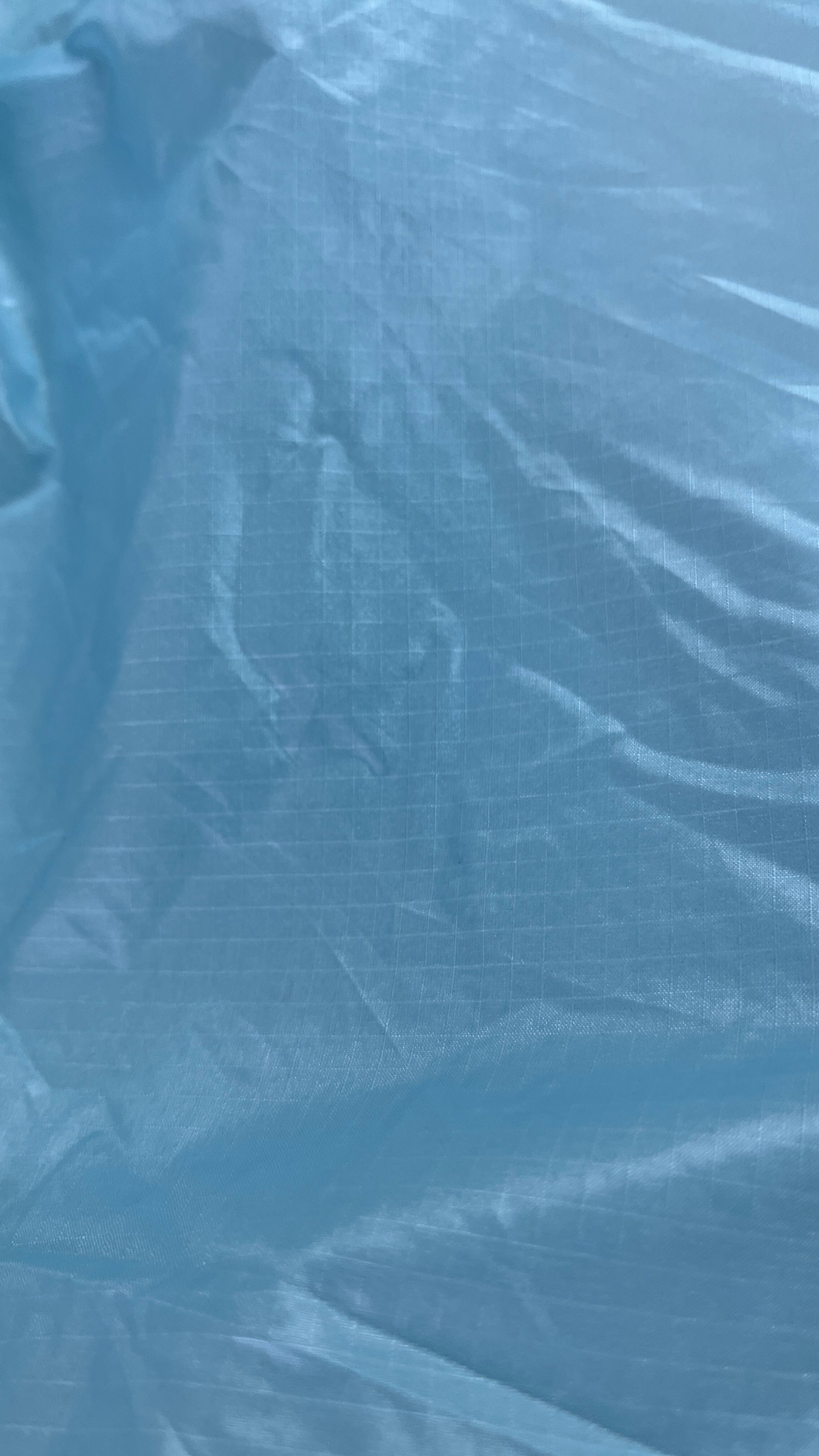 本製品に使用している生地は、強度に優れたリップストップ地。 パラシュートに使用される素材ならではの**「軽さ」と「強度」**を兼ね備えており、日常使いでの耐久性も抜群です。万が一の引っかけなどによる裂け目が広がりにくいのが特徴です。