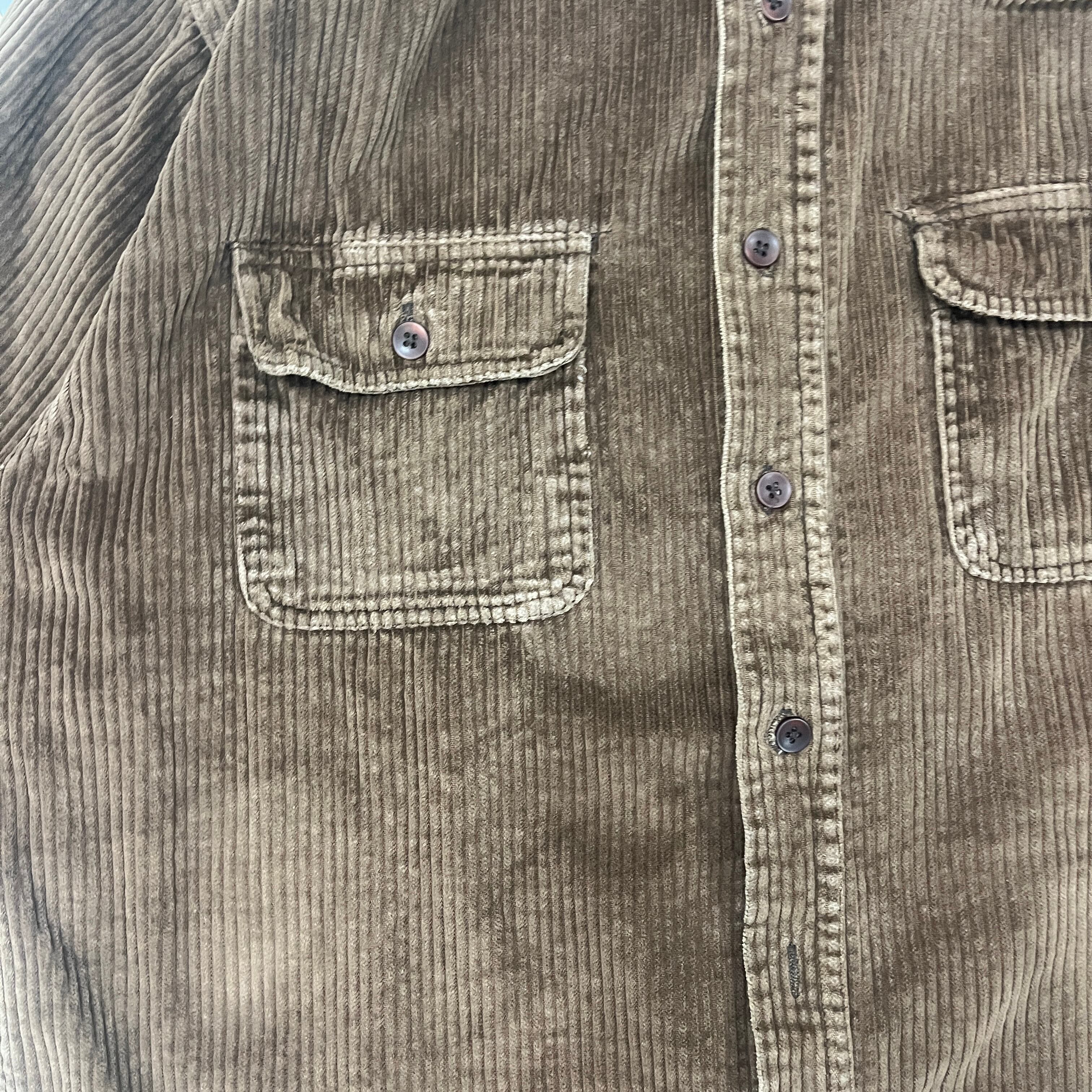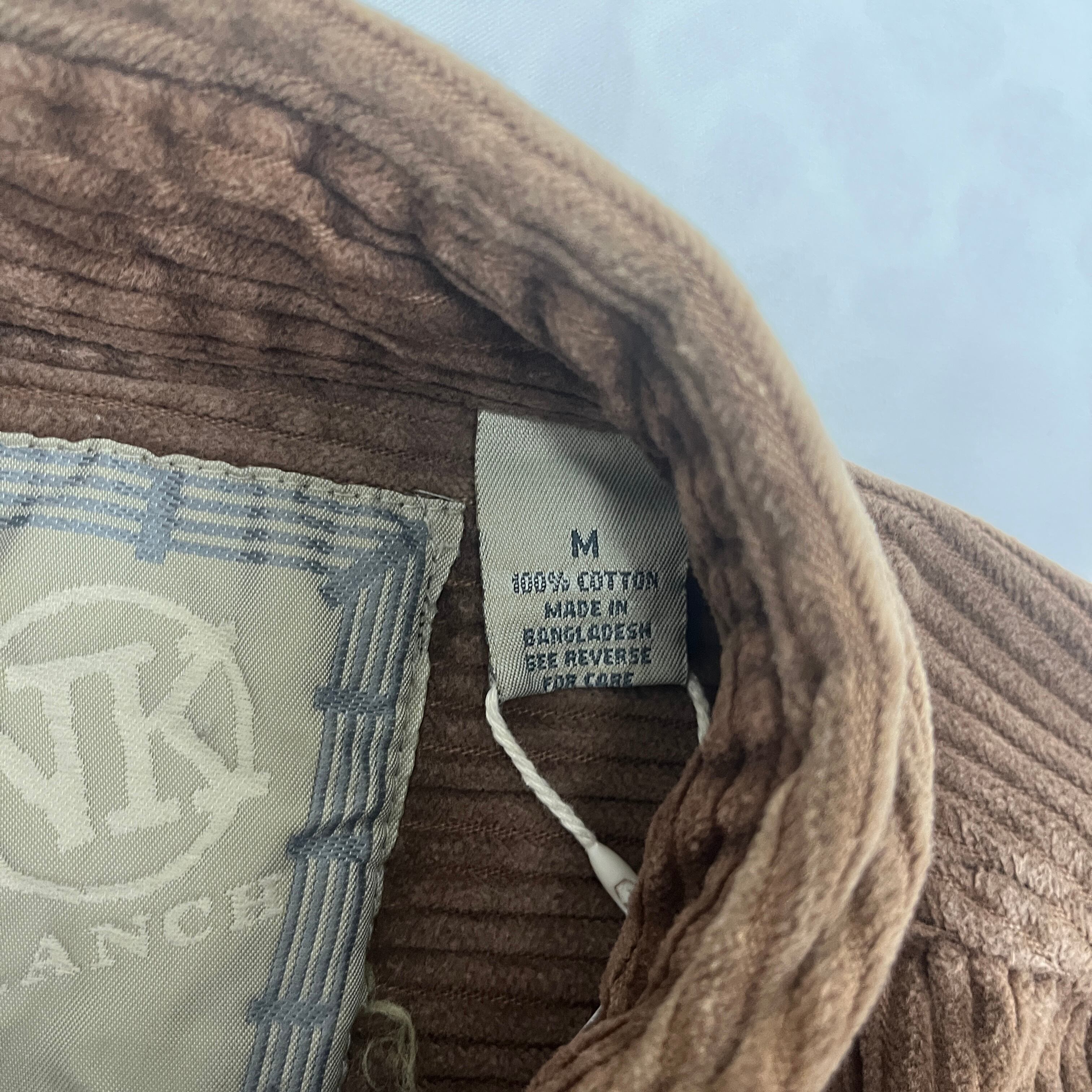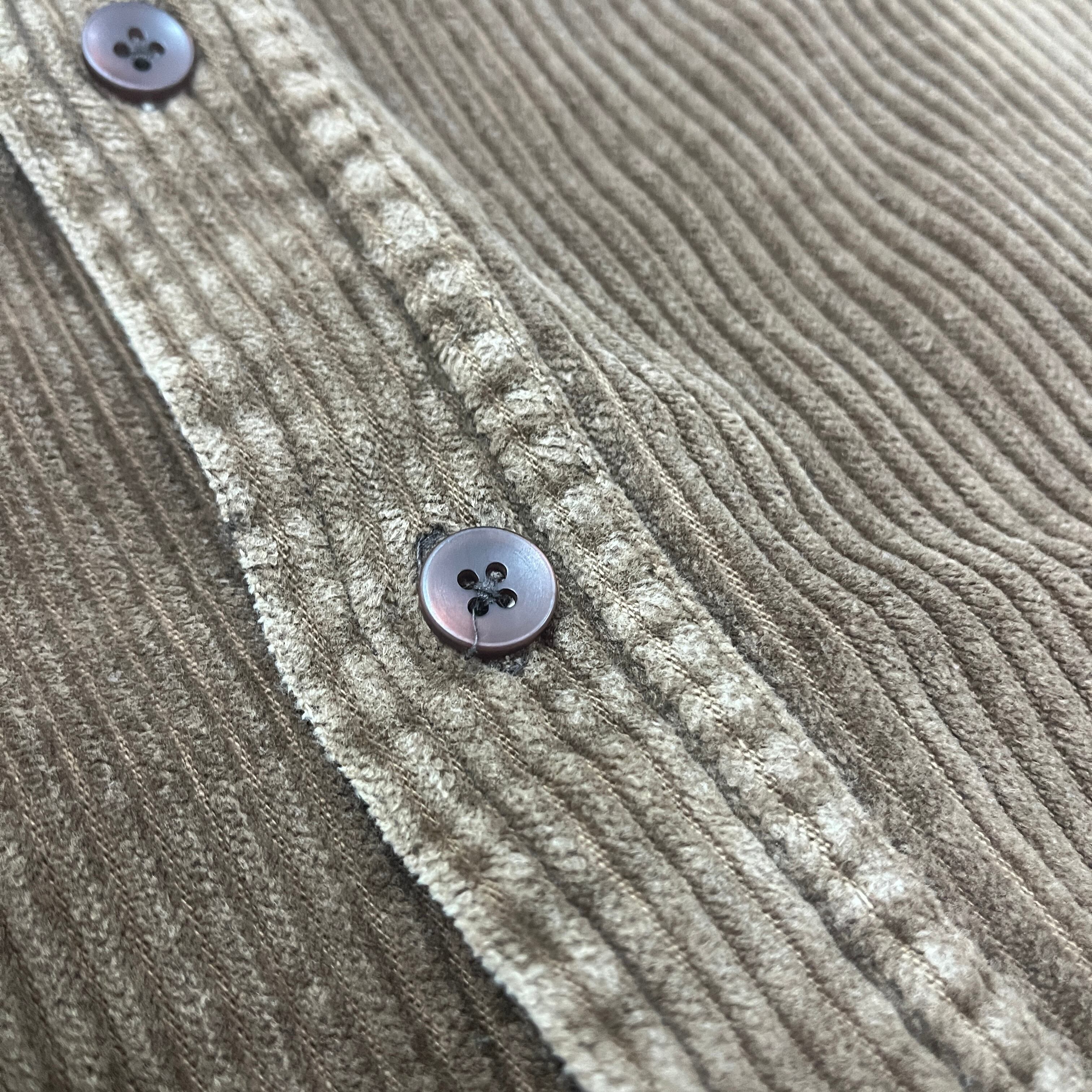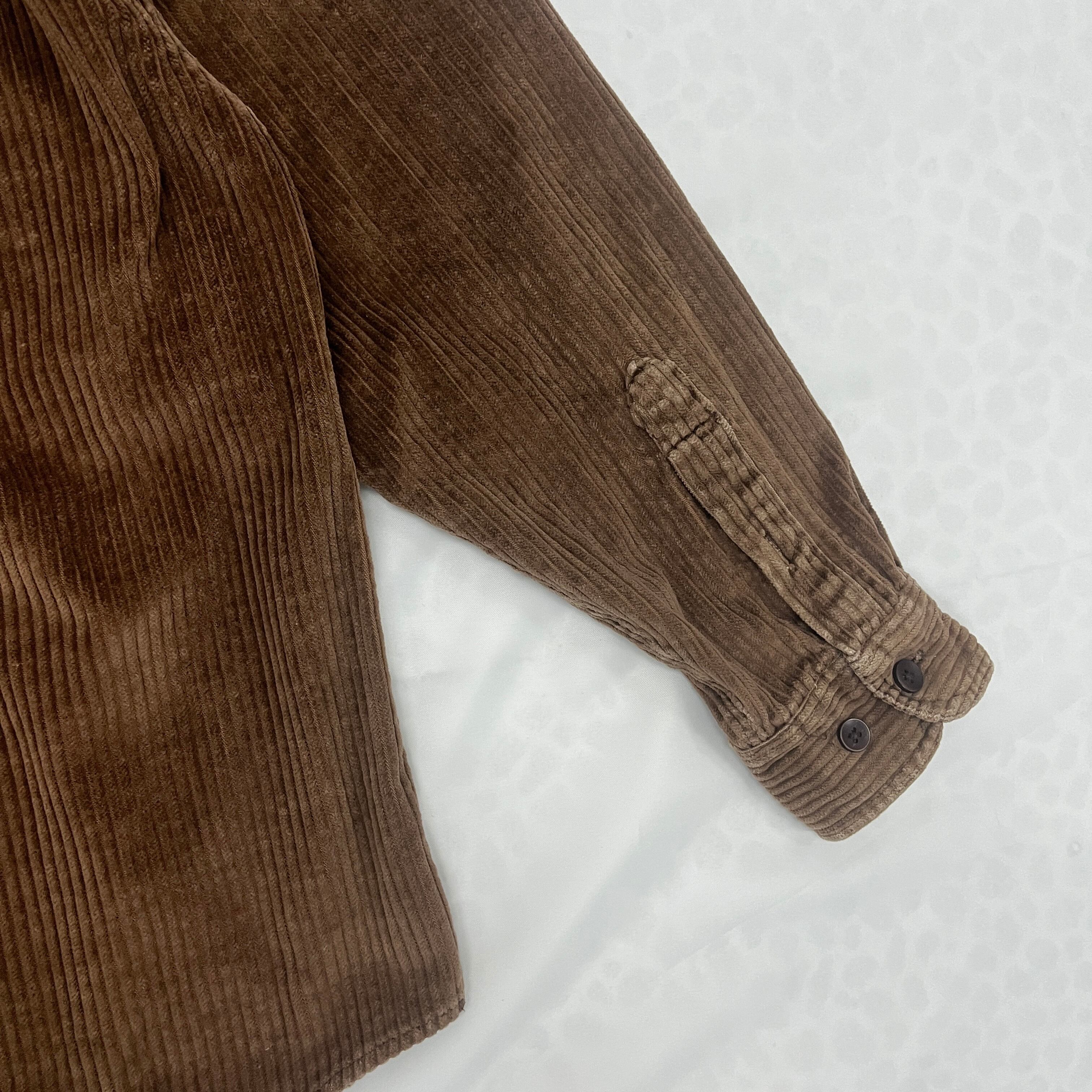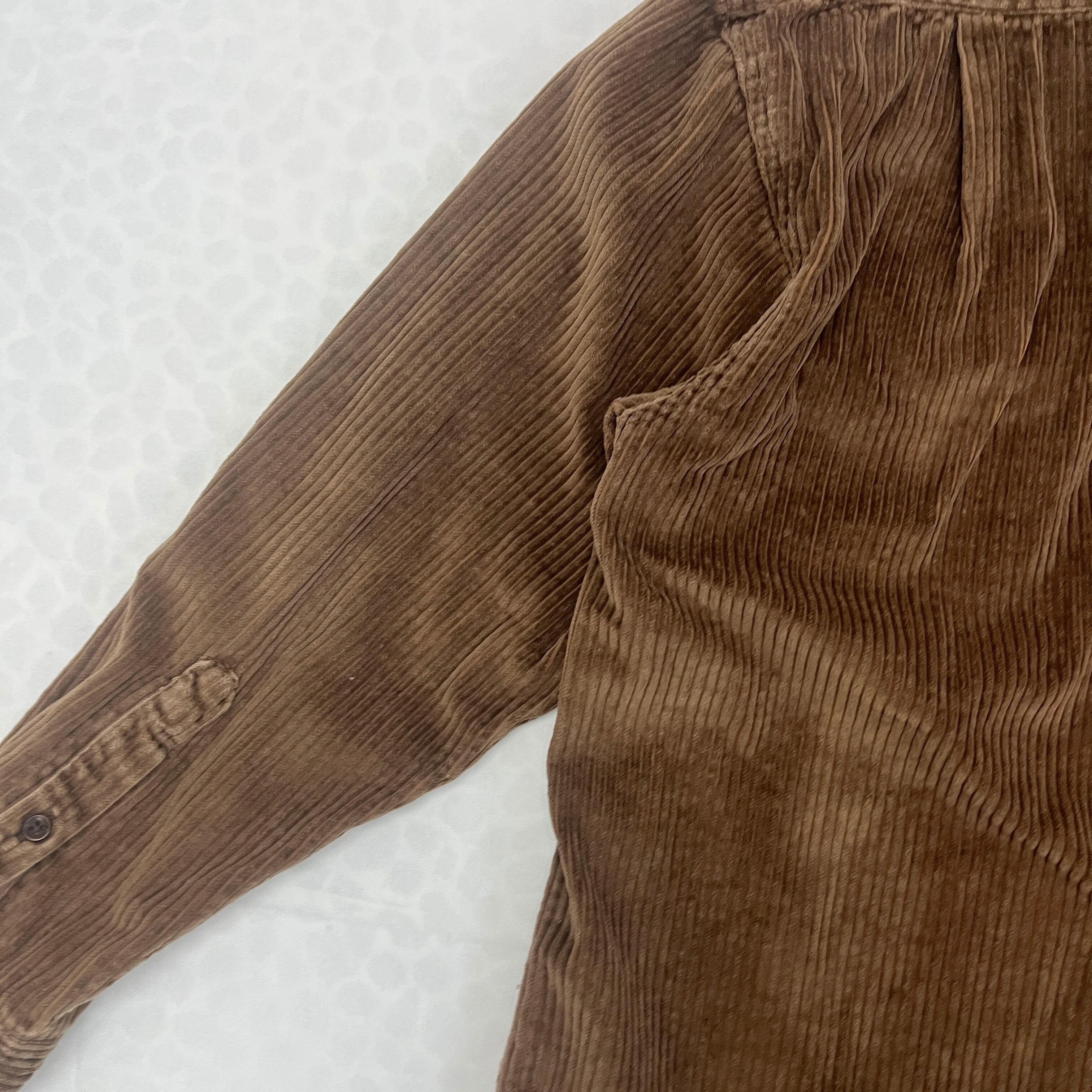 100%コットン製のブラウンコーデュロイシャツ、Mサイズで快適な着心地。