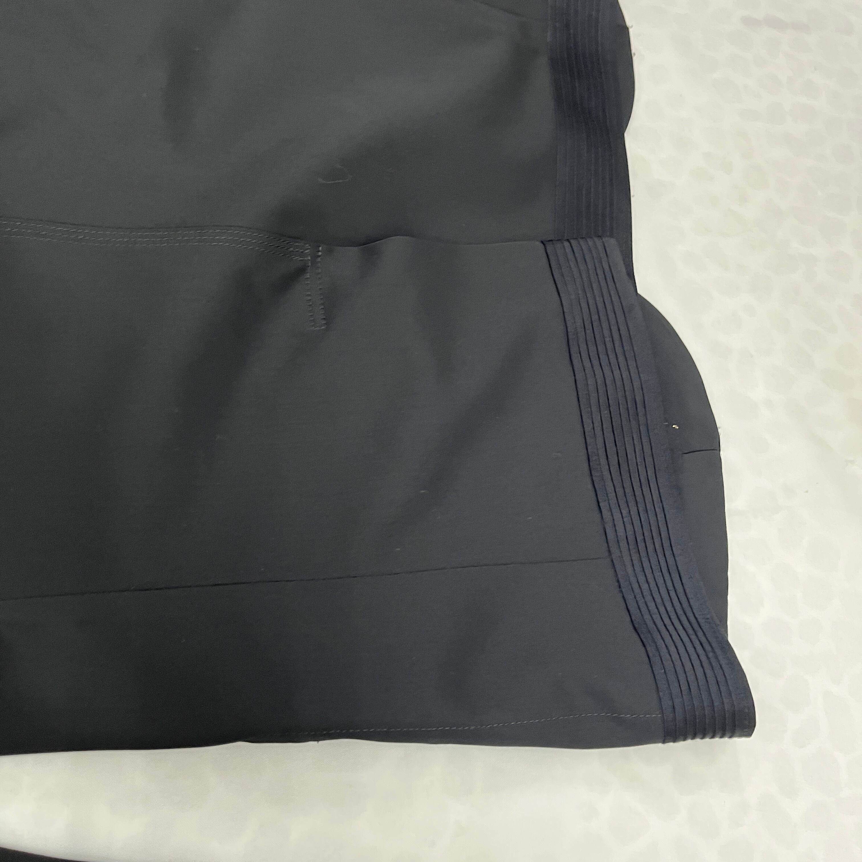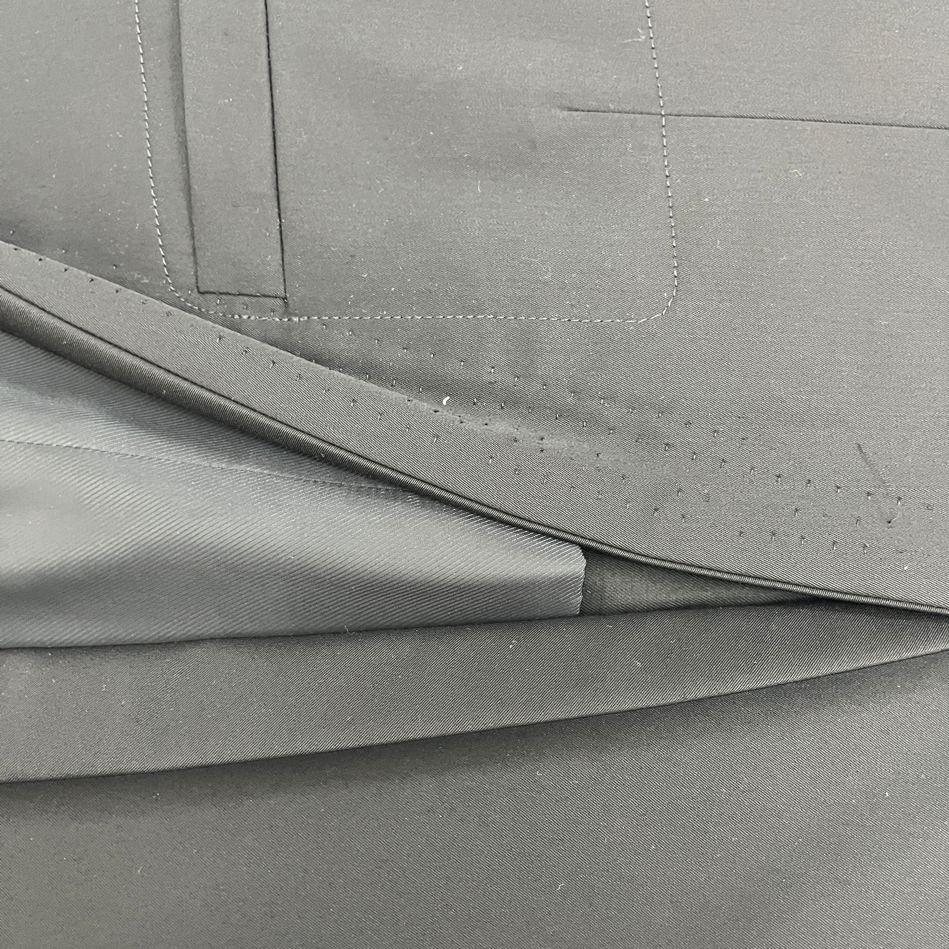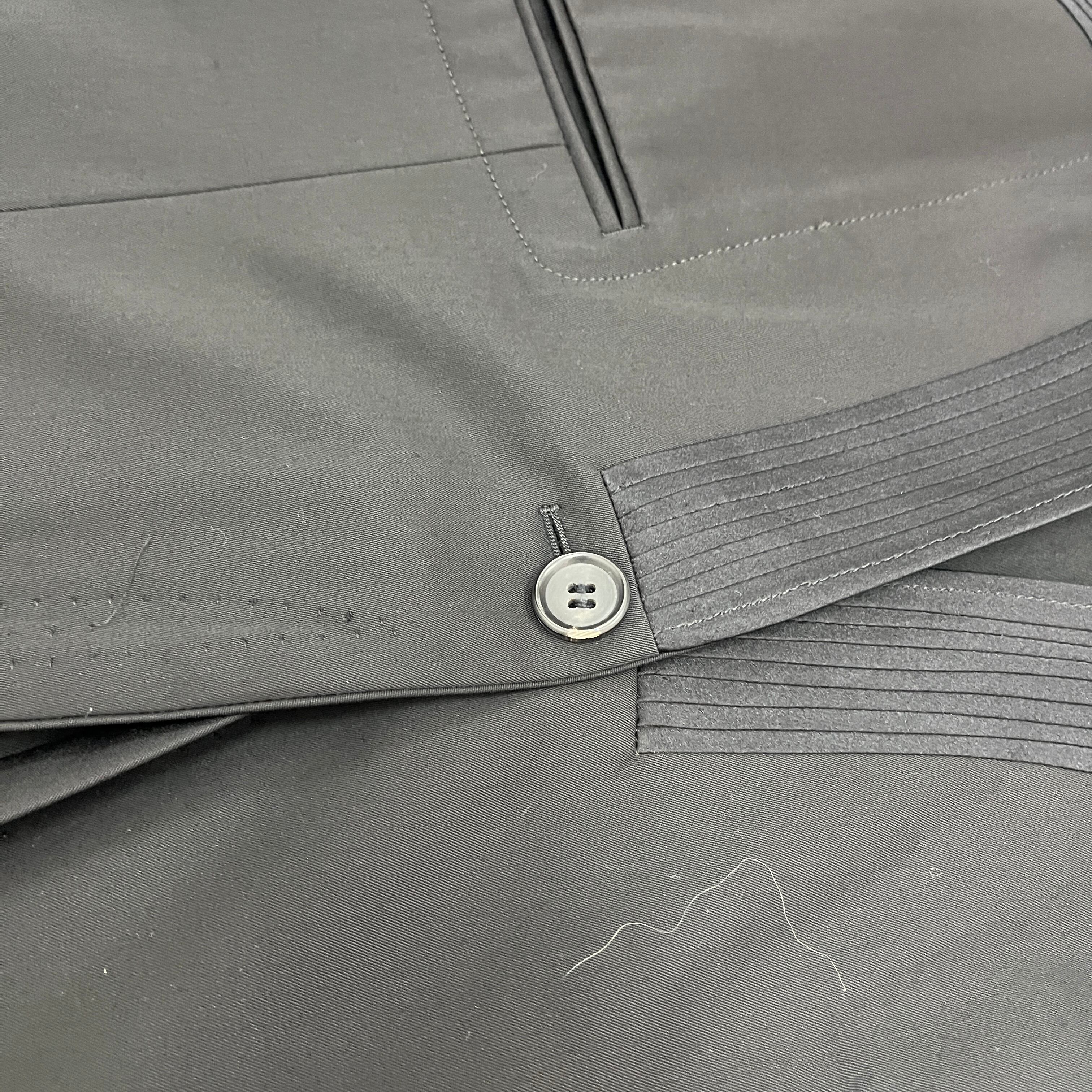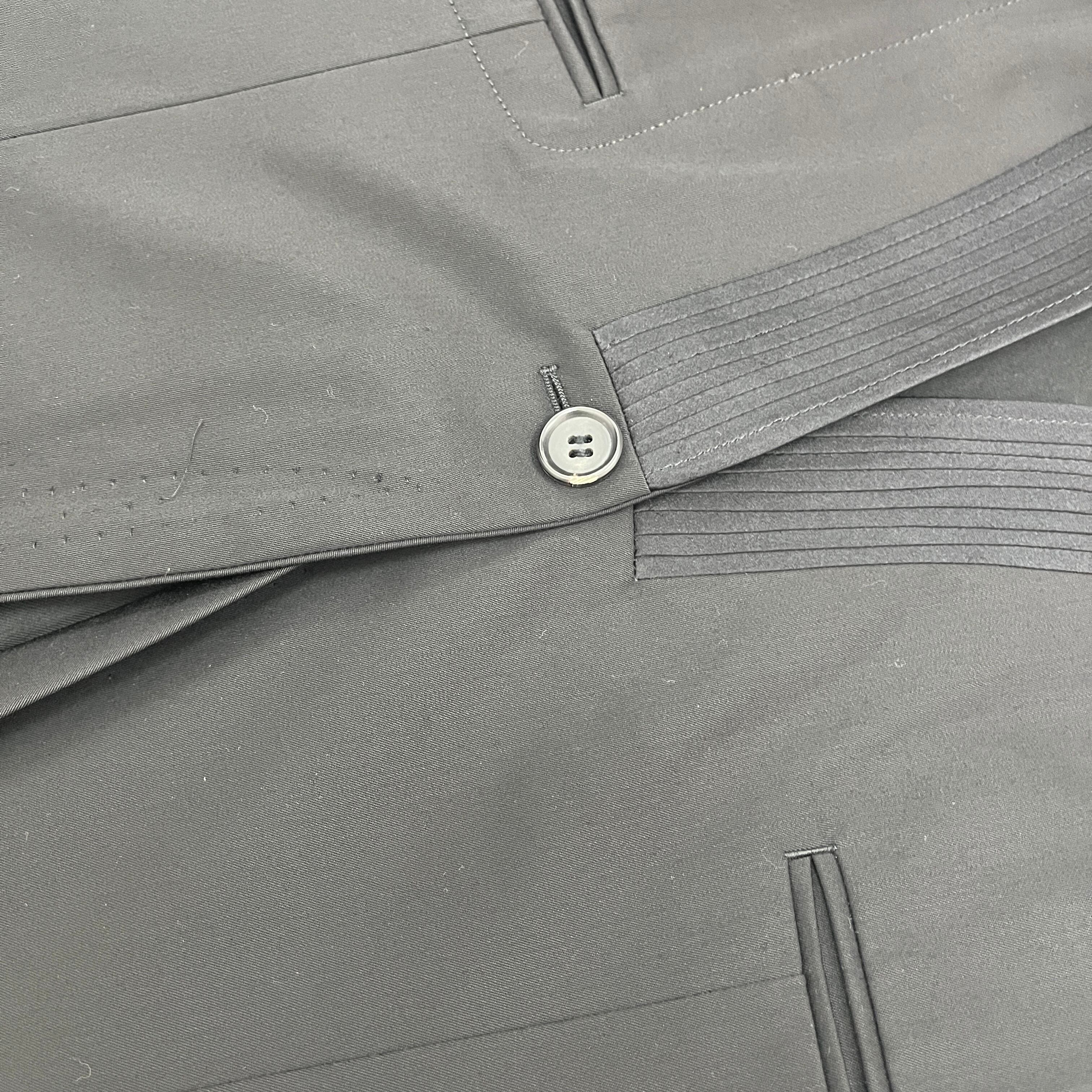 最大の特徴は、エレガントな印象を与えるショールカラー(へちま襟)と、デザインアクセントとなるピンタック裾。通常のテーラードジャケットとは一線を画す、モードでモダンな雰囲気です。