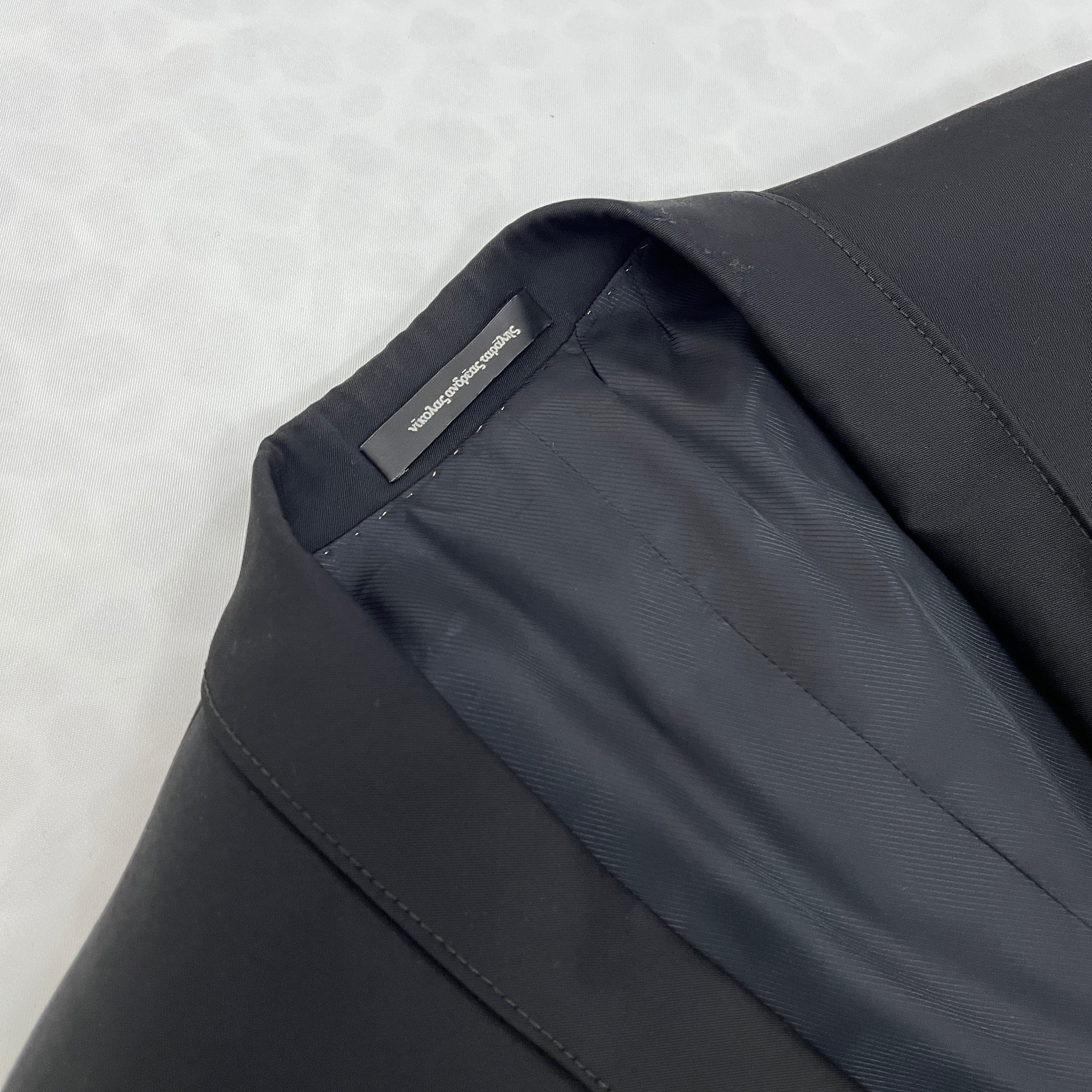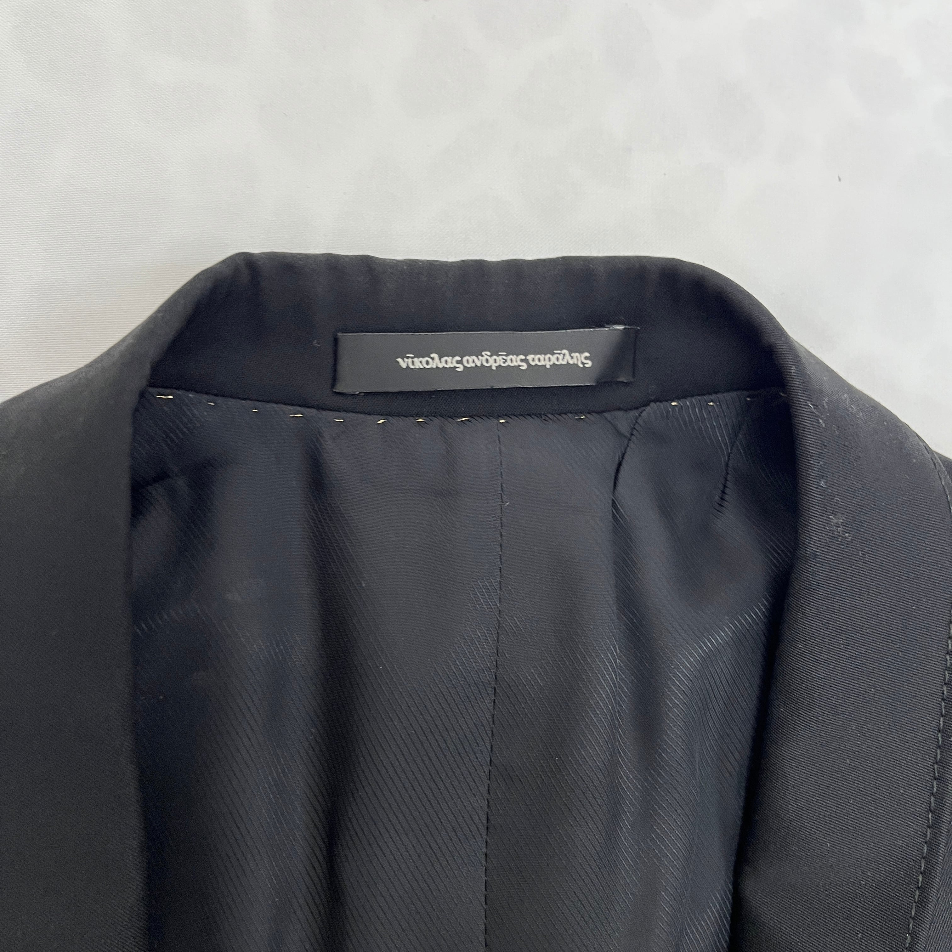 洗練されたデザインが際立つ、NICOLAS ANDREAS TARAUSのブラックテーラードジャケット。