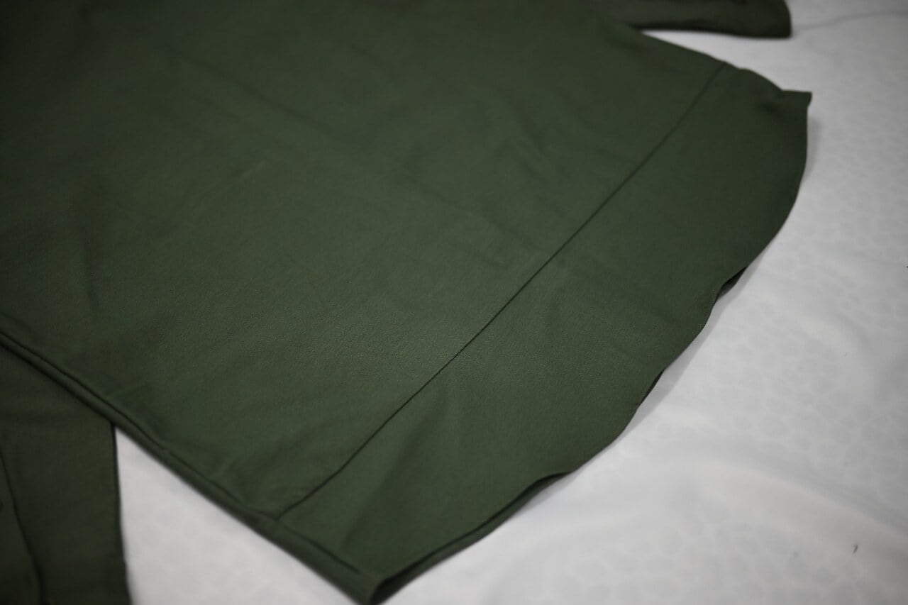 右身頃と左袖にはおなじみの「US」ステンシル、そしてシャツの裏側にはランドリーバッグの詳細なスペックがプリントされています。このシャツを身につけることは、ミリタリーの歴史とヴィンテージの魅力を、着て、感じる体験です。