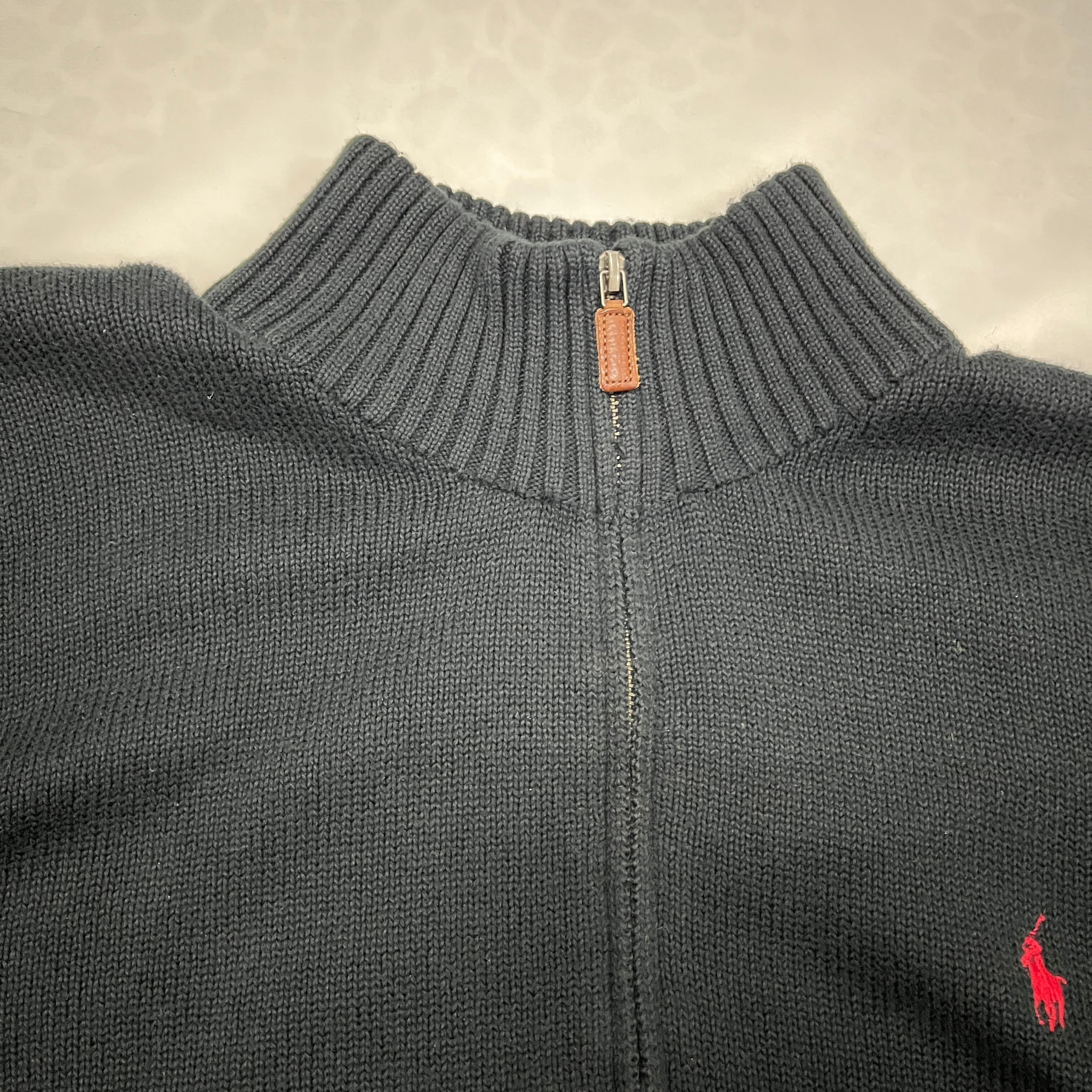 【希少XXL】ポロラルフローレン ハーフジップ コットンニット 黒 赤ポニー