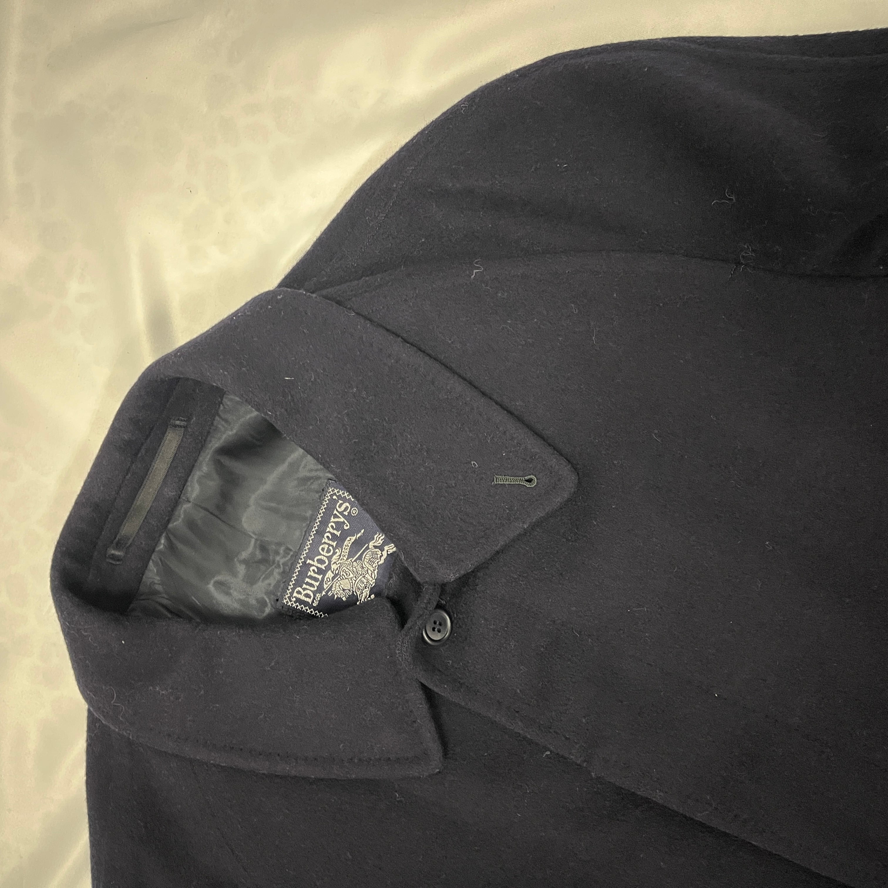 【英国製】Burberrys ヘビーメルトン ステンカラーコート 紺 肉厚ウール