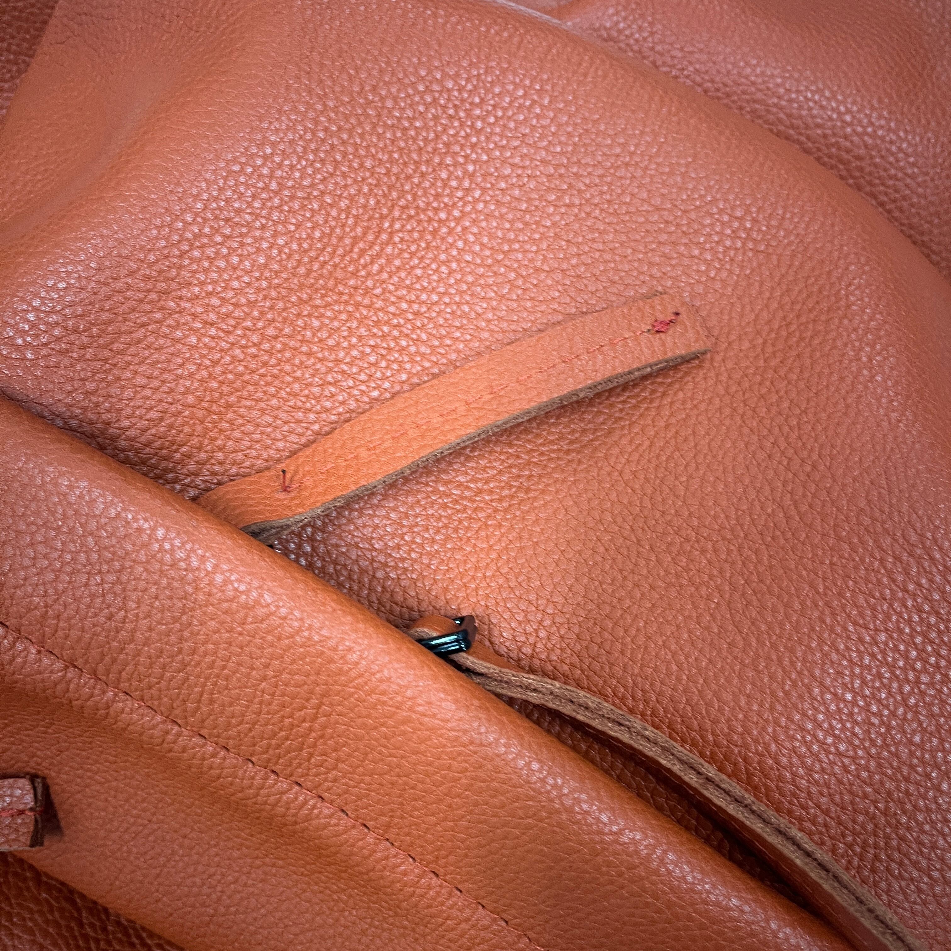 鮮やかなオレンジカラーが目を引く、オールレザー(本革)仕様のバックパックです。