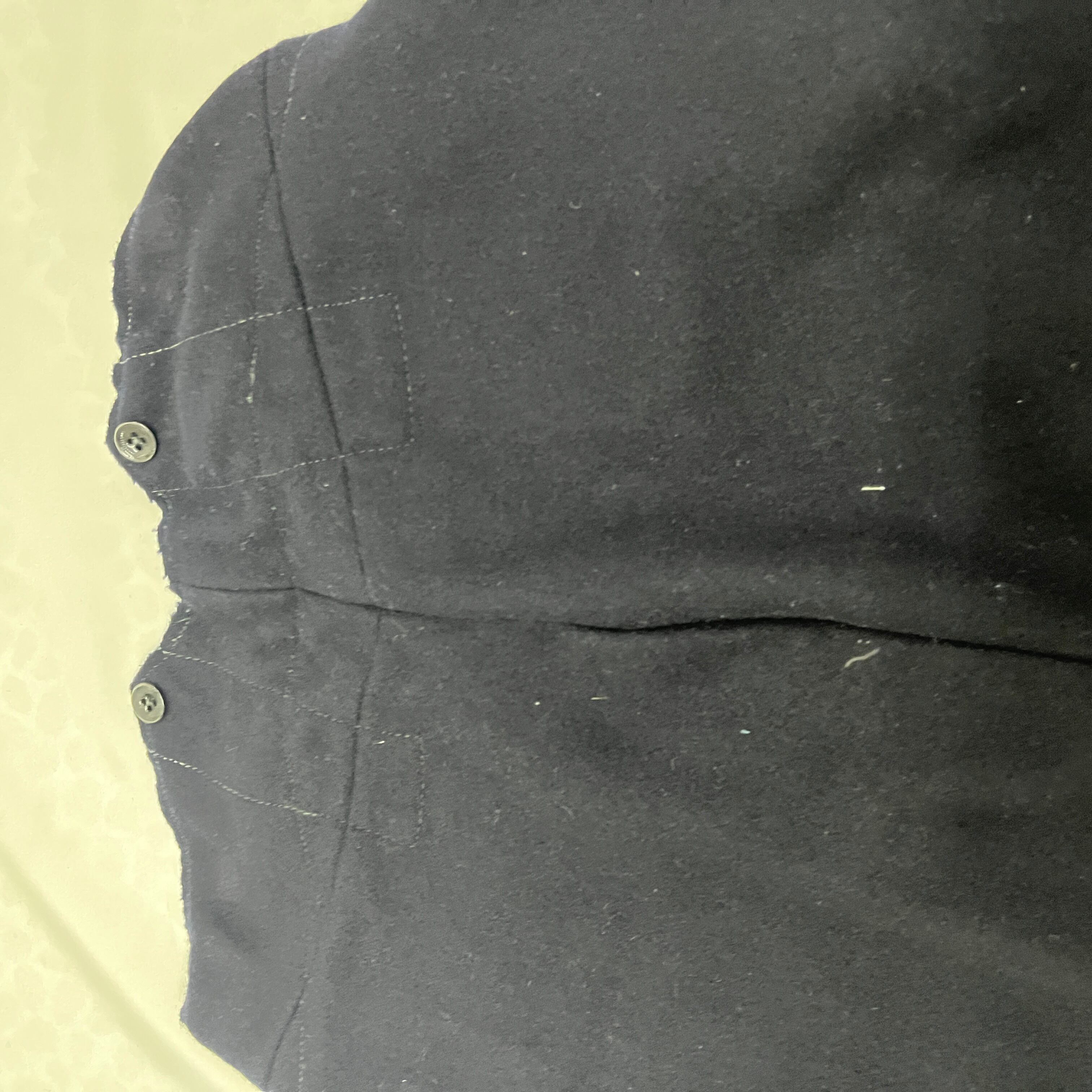 生地は目の詰まった上質なウール系素材で、深いミッドナイトブルー(またはブラック)の色味が上品です。