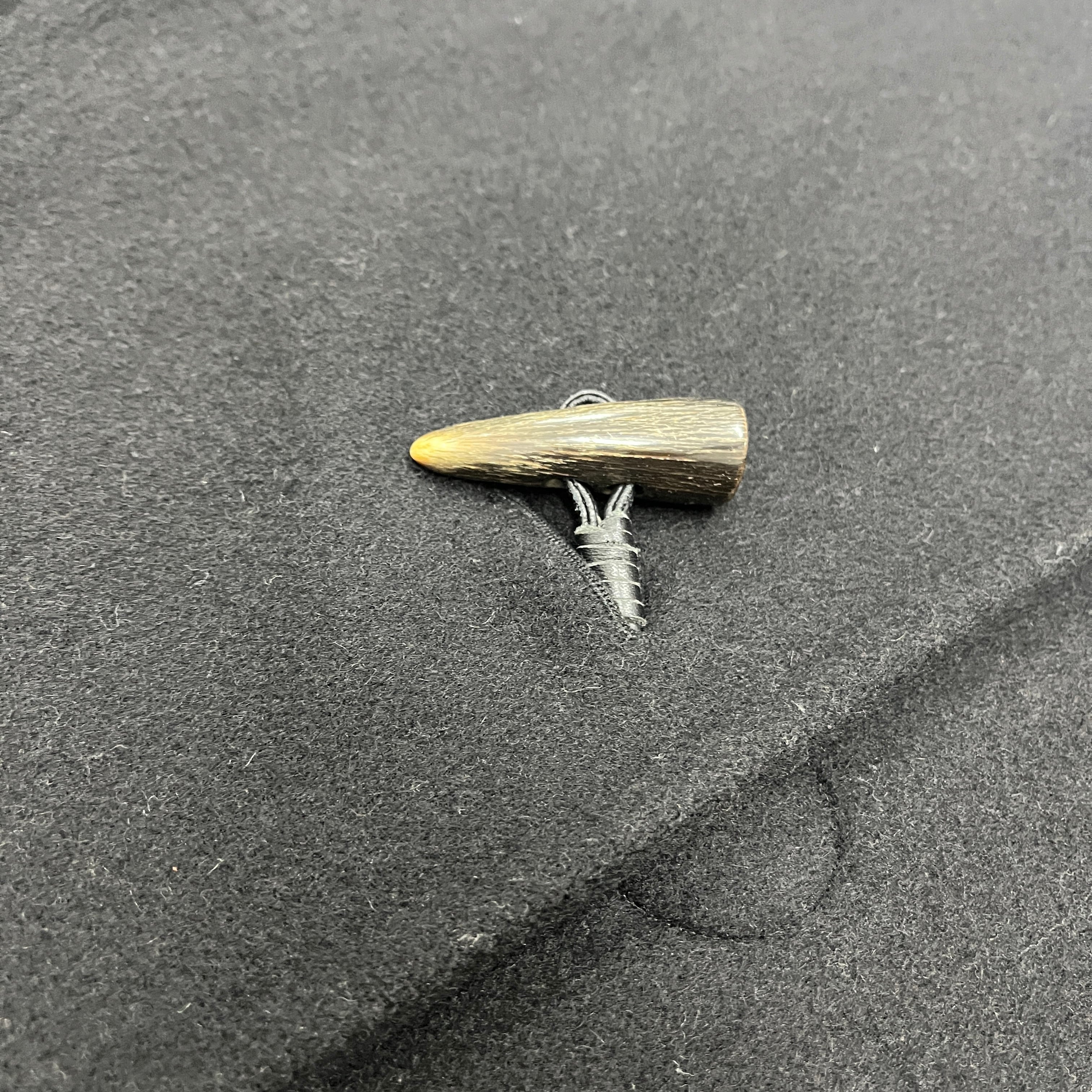 一方で、首元の第1ボタンと袖口には、高級感のある「水牛ボタン(バッファローホーン)」を使用しており、異素材の組み合わせが非常に洒落ています。