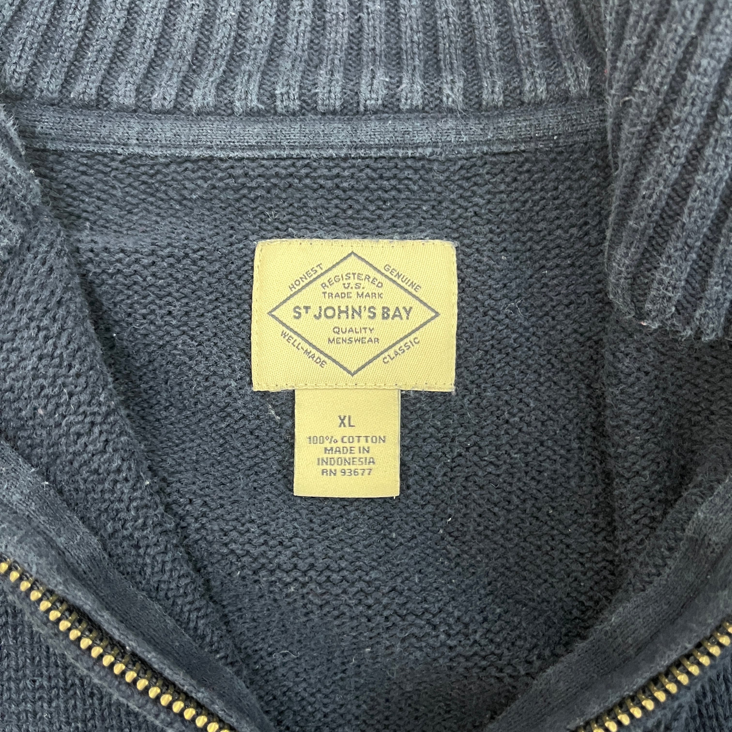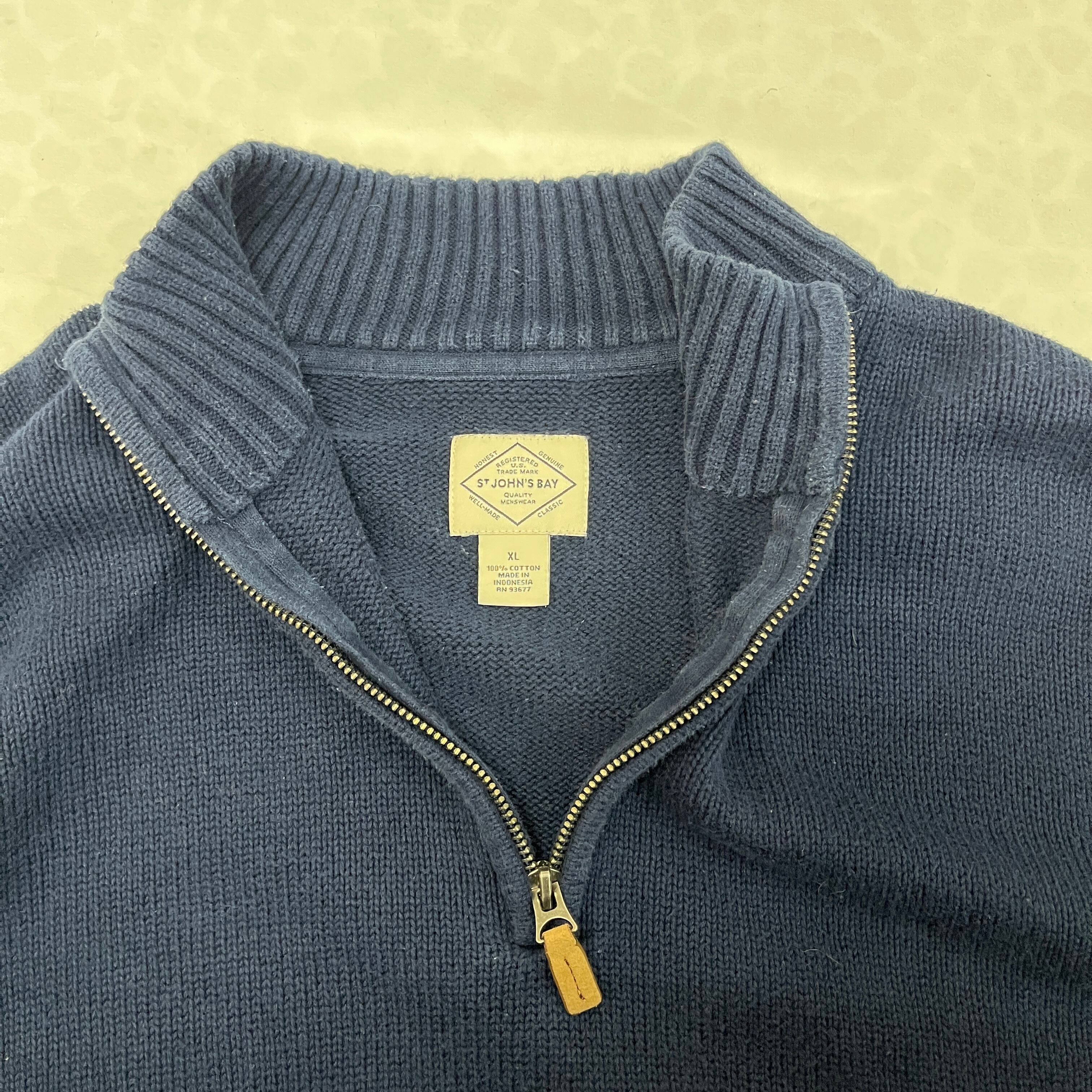 アメリカの老舗デパートJCPenneyのストアブランド、ST JOHN'S BAY(セントジョンズベイ)のハーフジップコットンセーターです。