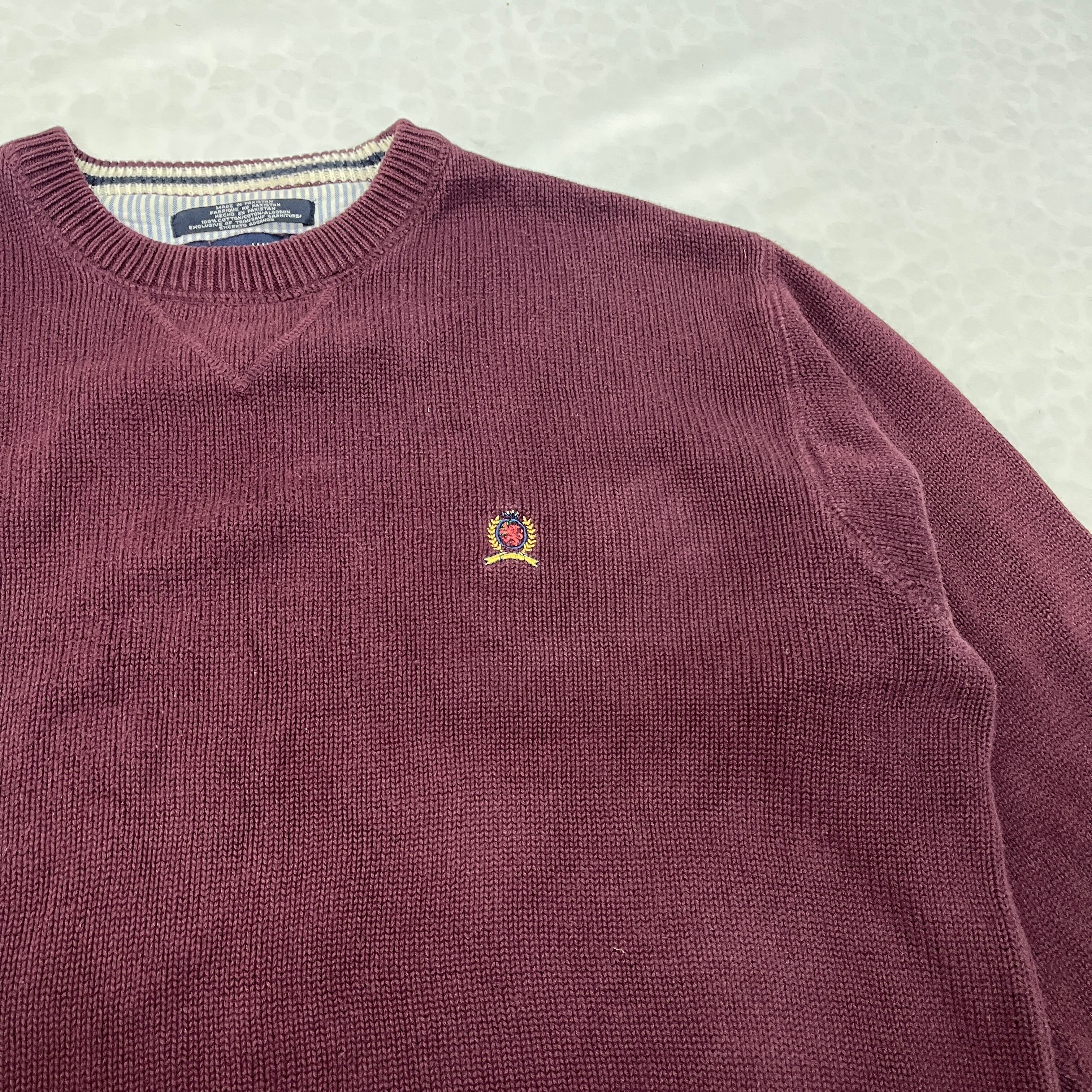 #TOMMYHILFIGER #トミーヒルフィガー #トミー #コットンニット #セーター #90s #バーガンディ #ビッグサイズ #オーバーサイズ #ボックスシルエット #古着