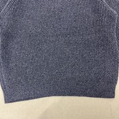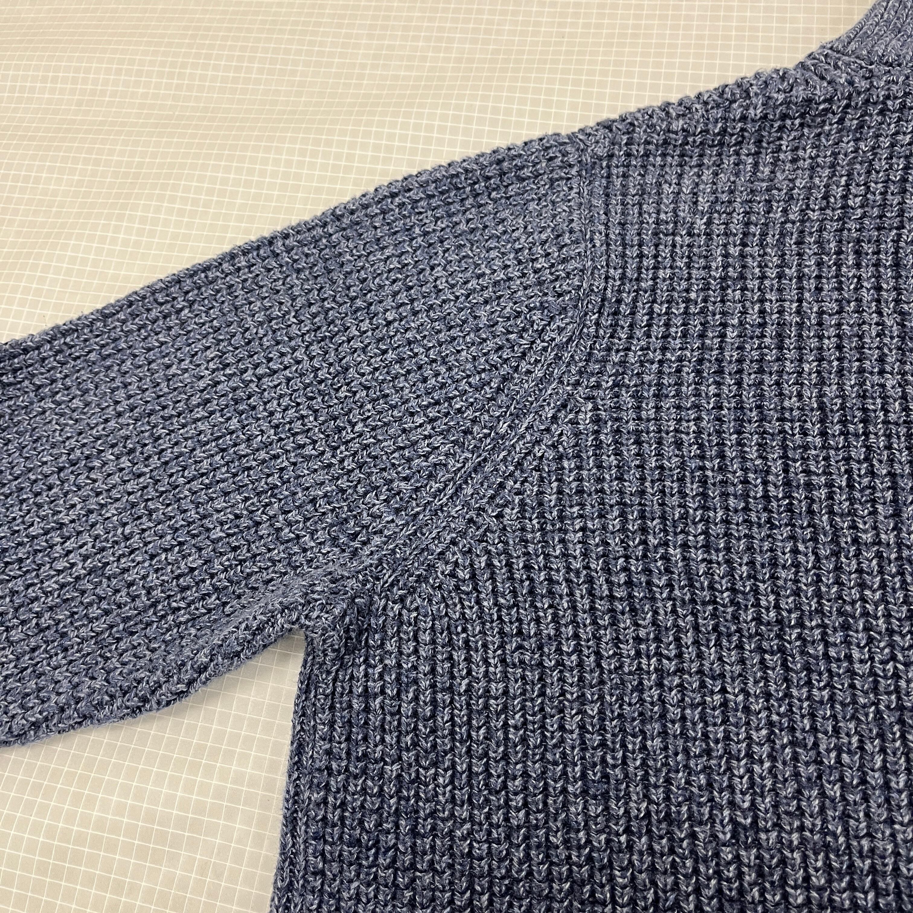 凹凸のあるワッフル編み(リブ編み)の表情と、美しい「ブルー」の色合いが特徴の一着です。