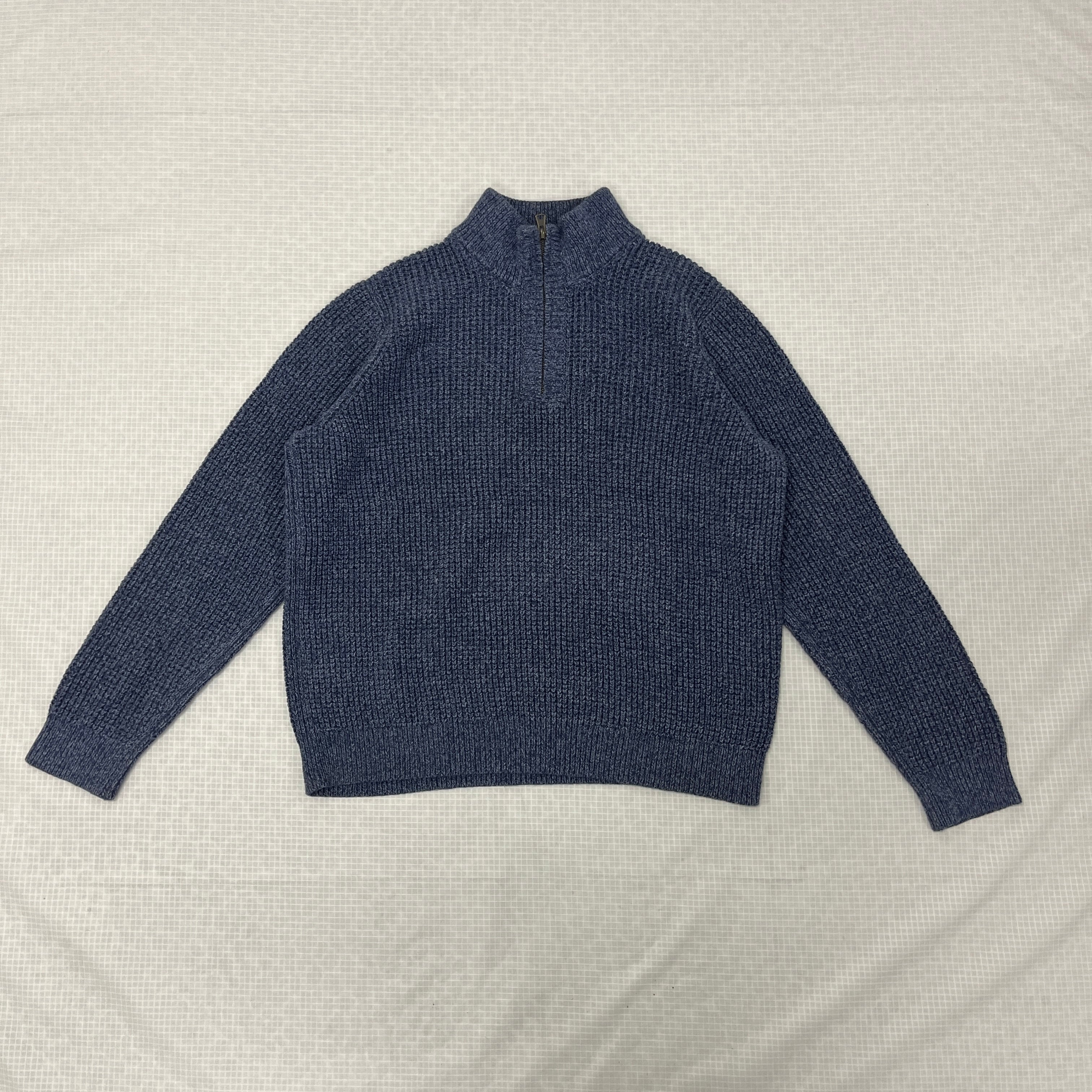 #LLBean #エルエルビーン #ハーフジップ #コットンニット #ワッフルニット #畦編み #杢ブルー #ヘザーカラー #ボックスシルエット #短丈 #アメカジ #アウトドア #古着 #90s #00s