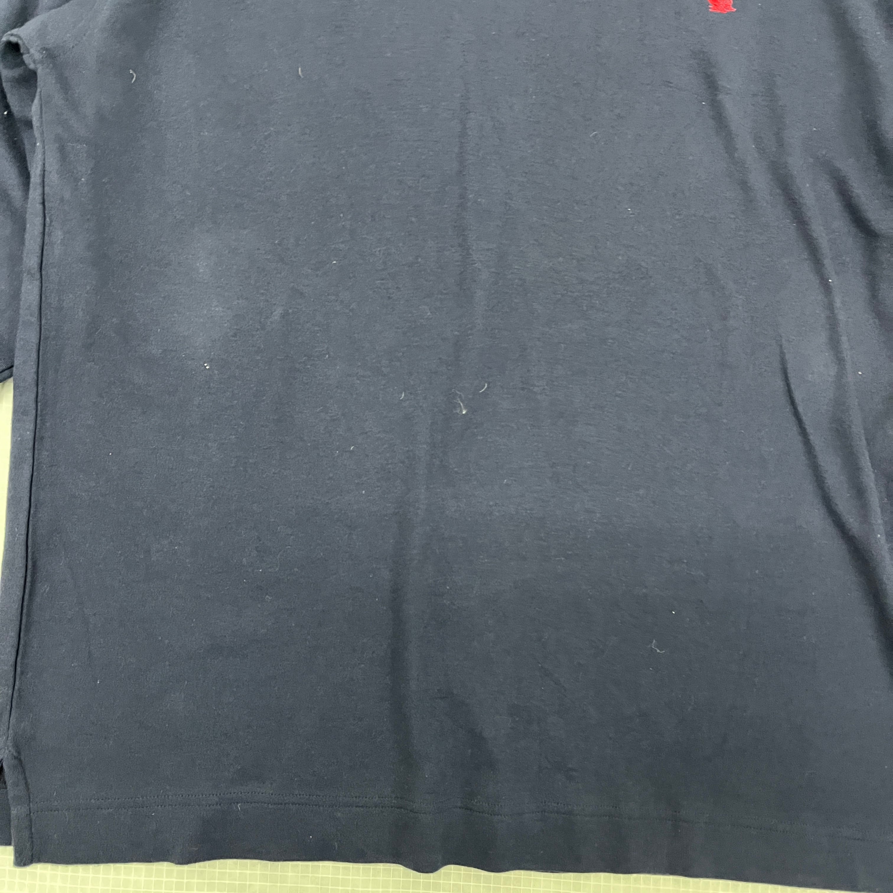 左胸にはブランドのアイコンであるヨットの刺繍(赤)が入り、ネイビーボディの良いアクセントになっています。