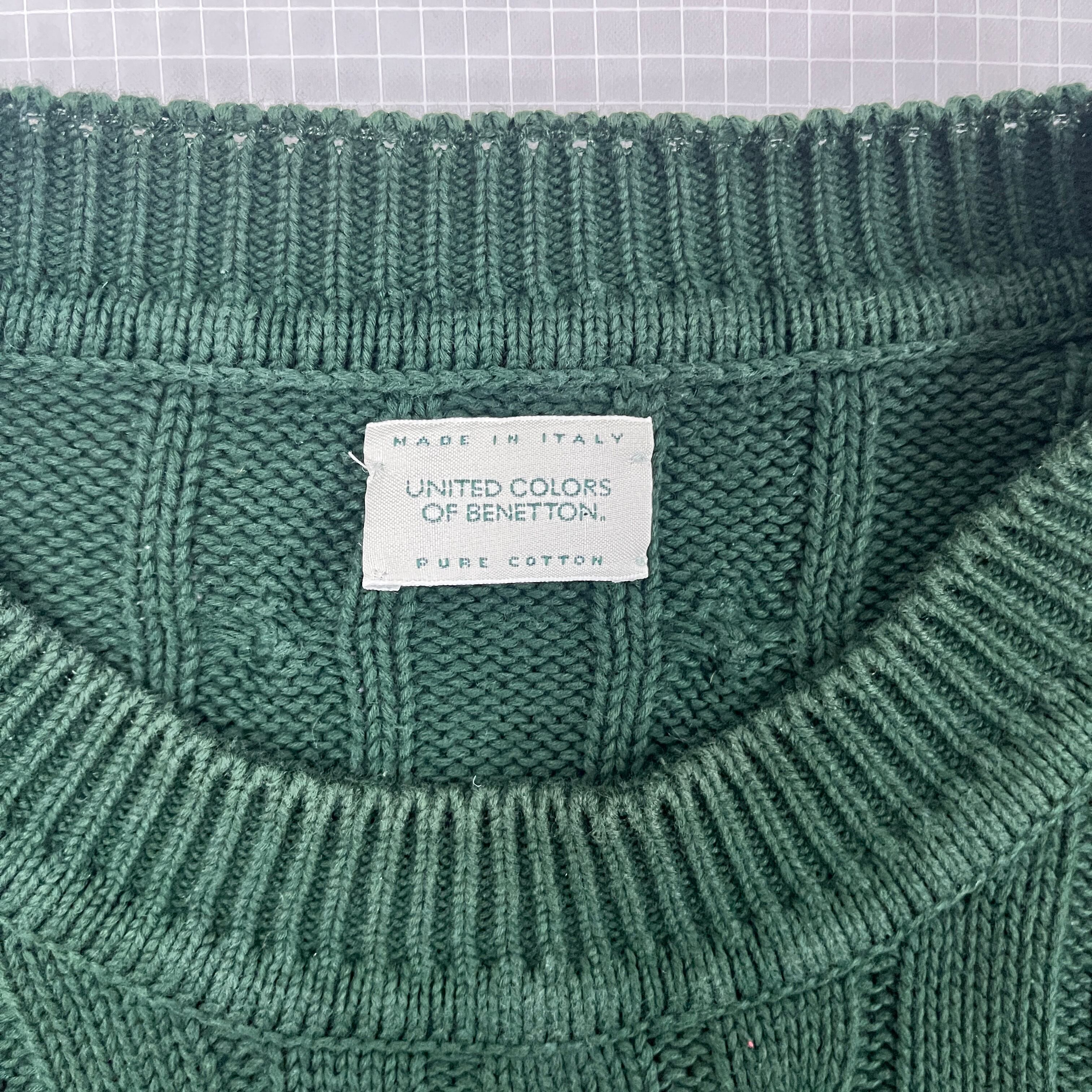 #BENETTON #ベネトン #イタリア製 #MadeinItaly #ケーブルニット #コットンセーター #ダークグリーン #緑 #XL #ビッグサイズ #オーバーサイズ #90s #ユーロ古着 #古着