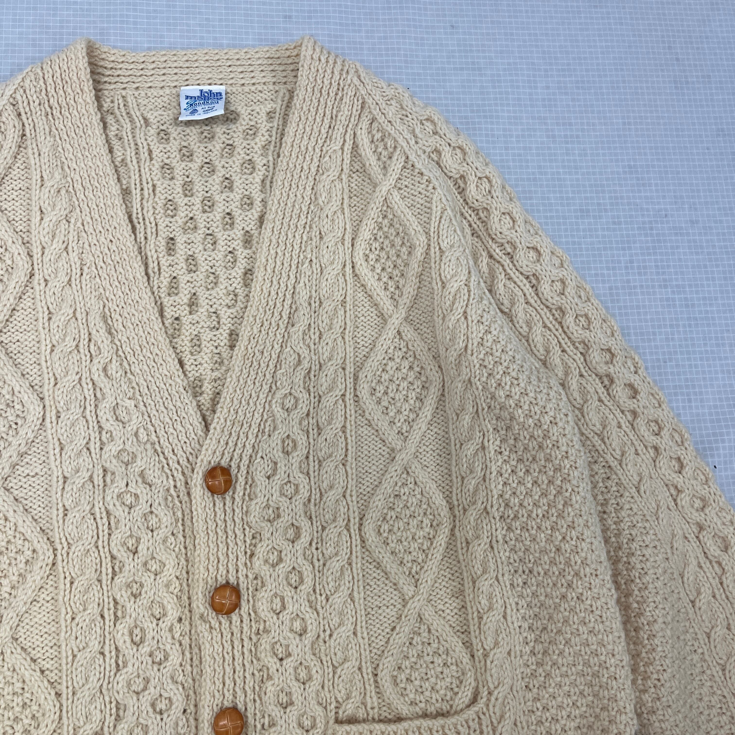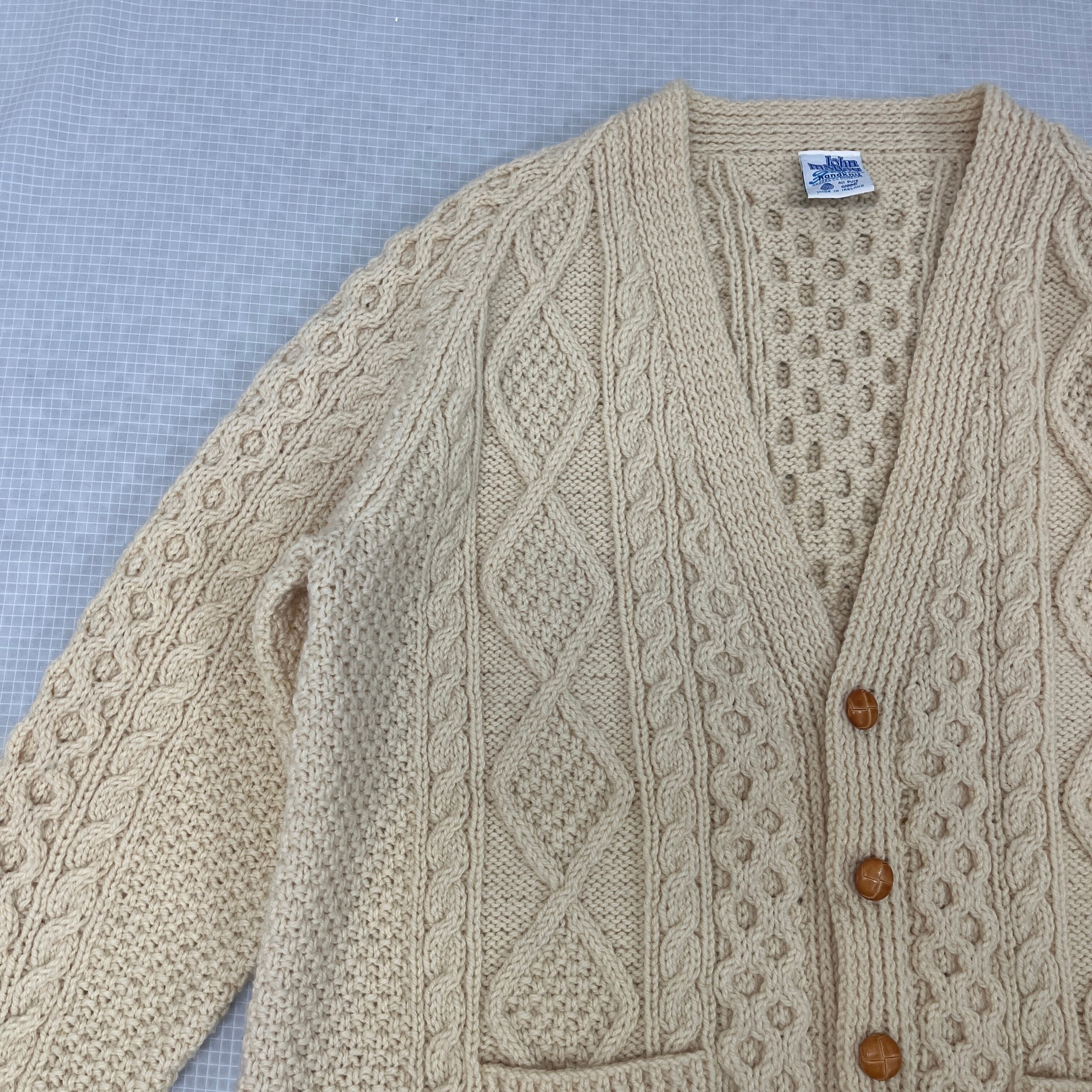 #JohnMolloy #ジョンモロイ #アランニット #フィッシャーマンニット #手編み #ハンドニット #アイルランド製 #カーディガン #ウール #極太 #オーバーサイズ #インバーアラン #古着 #訳あり