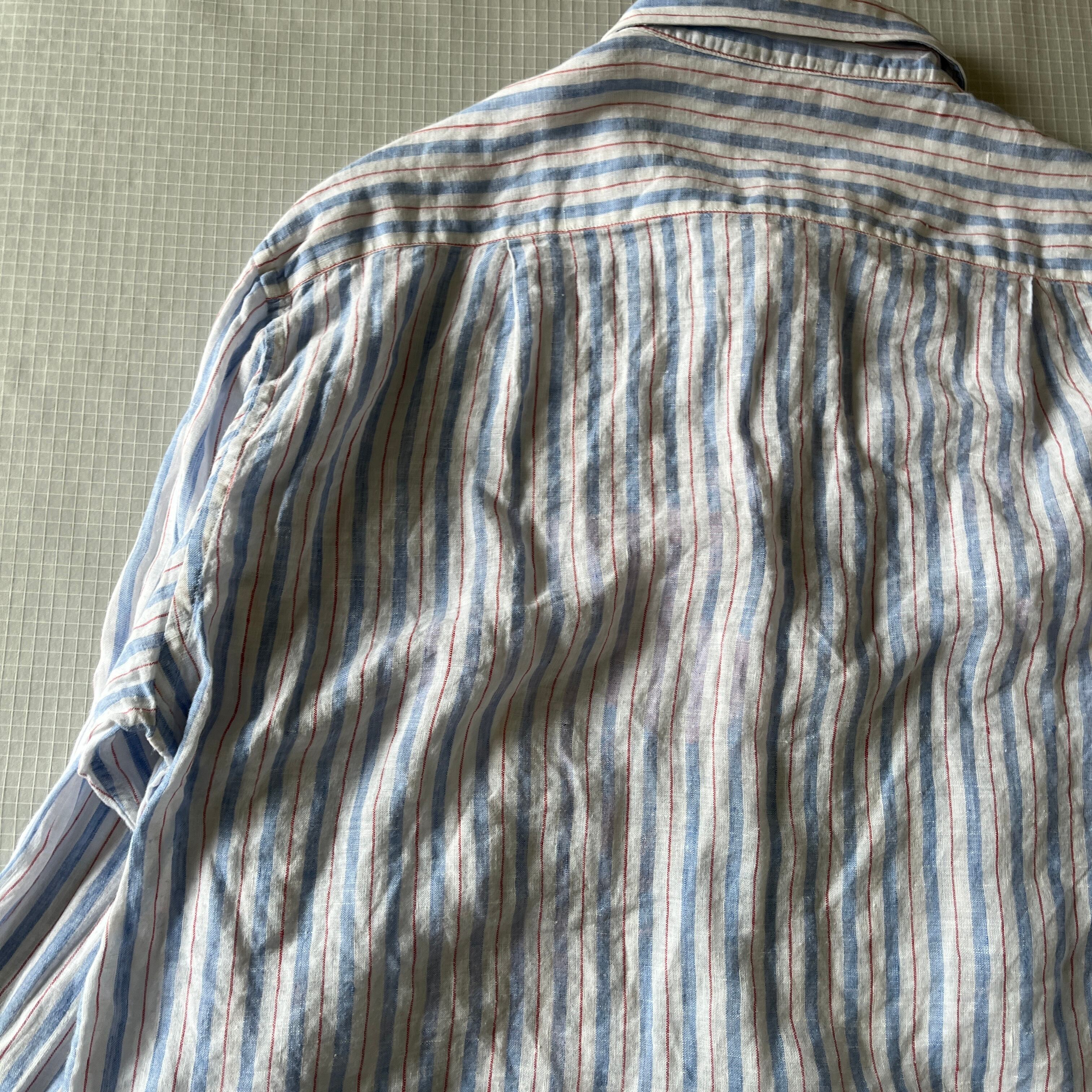 #MARIOROMANO #イタリア製 #MADEINITALY #リネンシャツ #麻100 #ストライプシャツ #マルチストライプ #オーバーサイズ #ビッグシルエット #ヴィンテージ #フェード #こなれ感 #ユーロ古着 #春夏