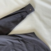 フロントおよび袖口には、厚みと美しい光沢を放つ「天然貝ボタン」を採用。光の当たり方で表情を変えるボタンが、シンプルなデザインの中にも圧倒的な高級感を添えています。