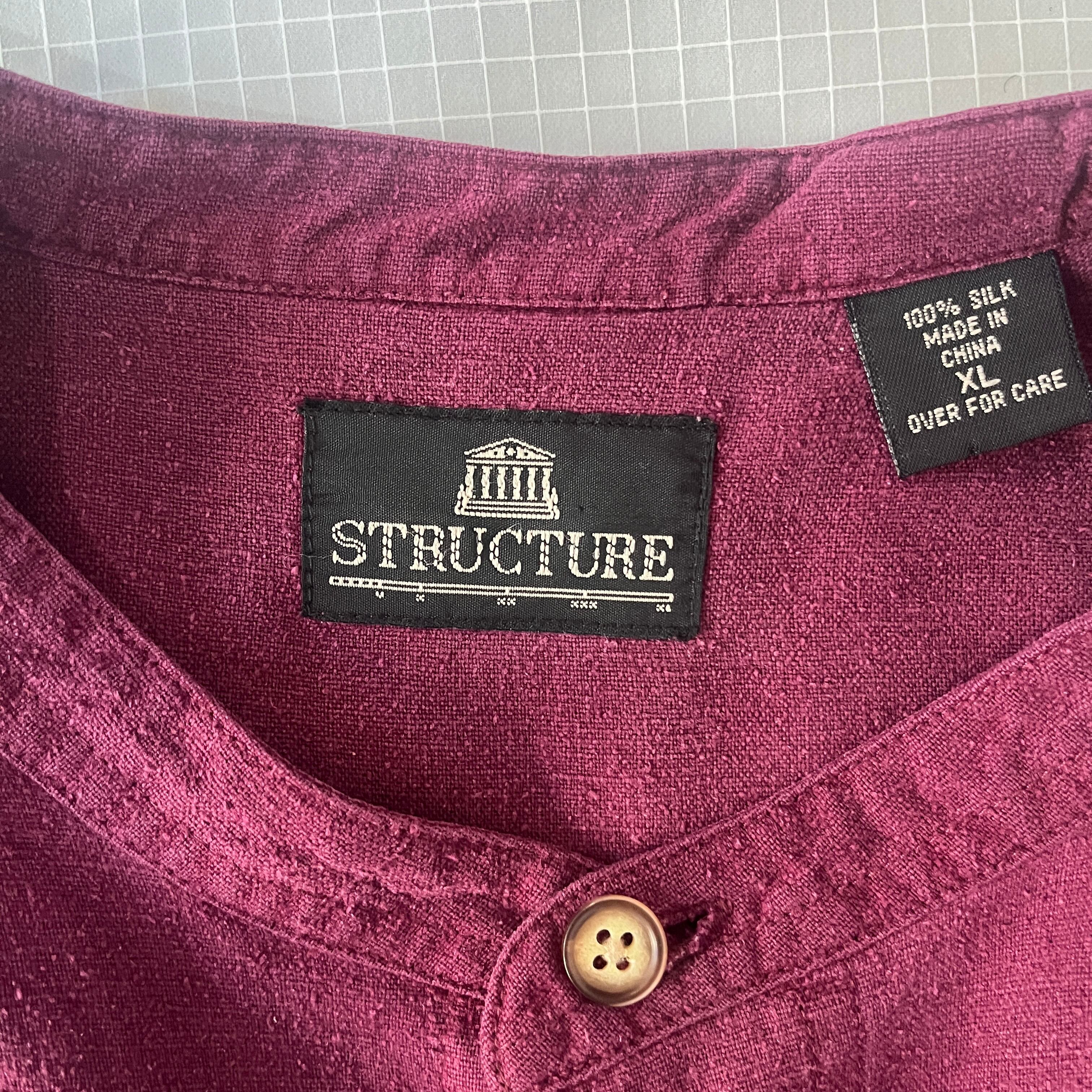 #STRUCTURE #ストラクチャー #シルクシャツ #ノーカラーシャツ #バンドカラーシャツ #90s #ヴィンテージ #XL #ビッグシルエット #オーバーサイズ #ネップシルク #古着 #テロシャツ