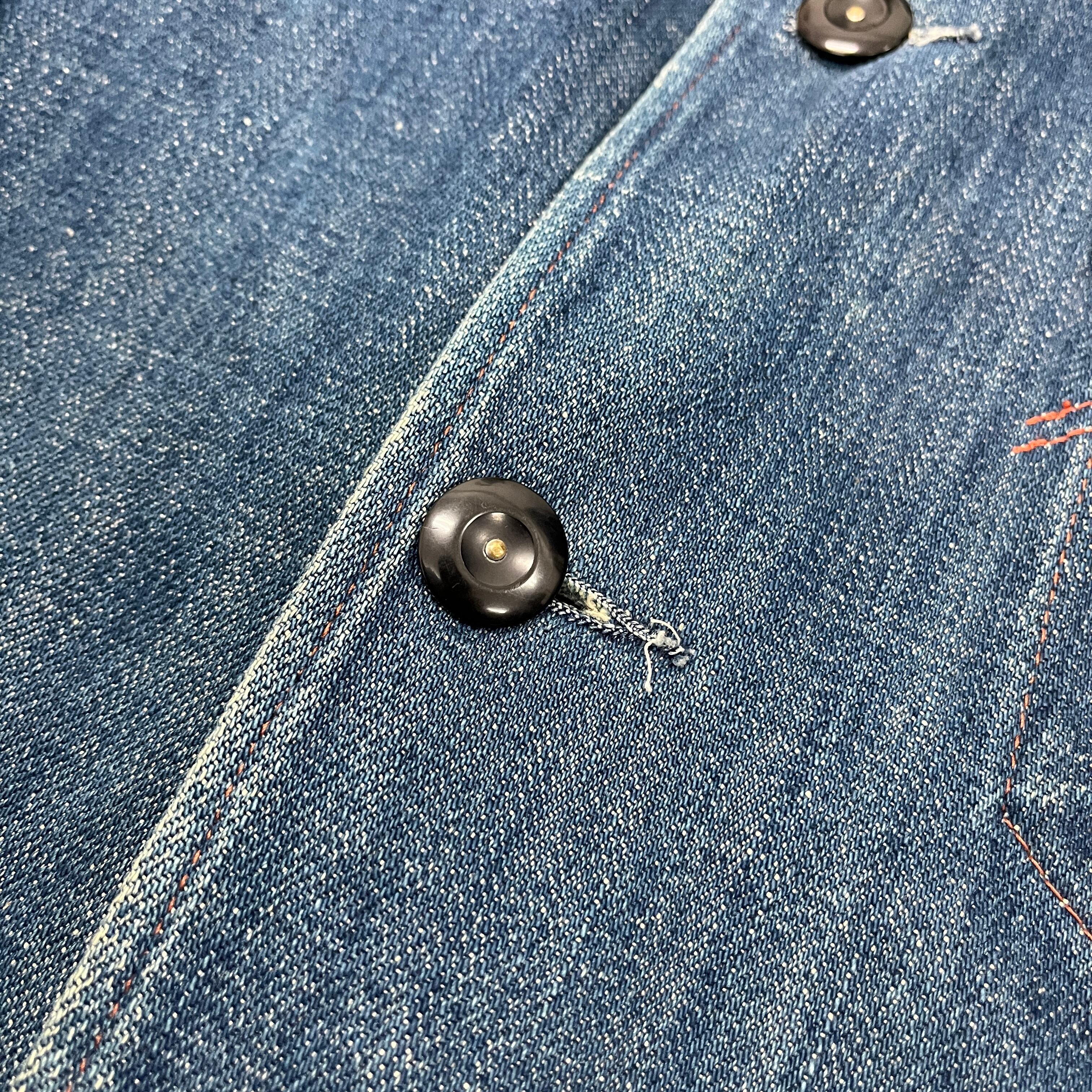 テーラードジャケットの美しいシルエットに、ヴィンテージワークウェアの象徴である「チェンジボタン(裏側を金属リングで固定するボタン)」を採用した、非常に凝った作りになっています。