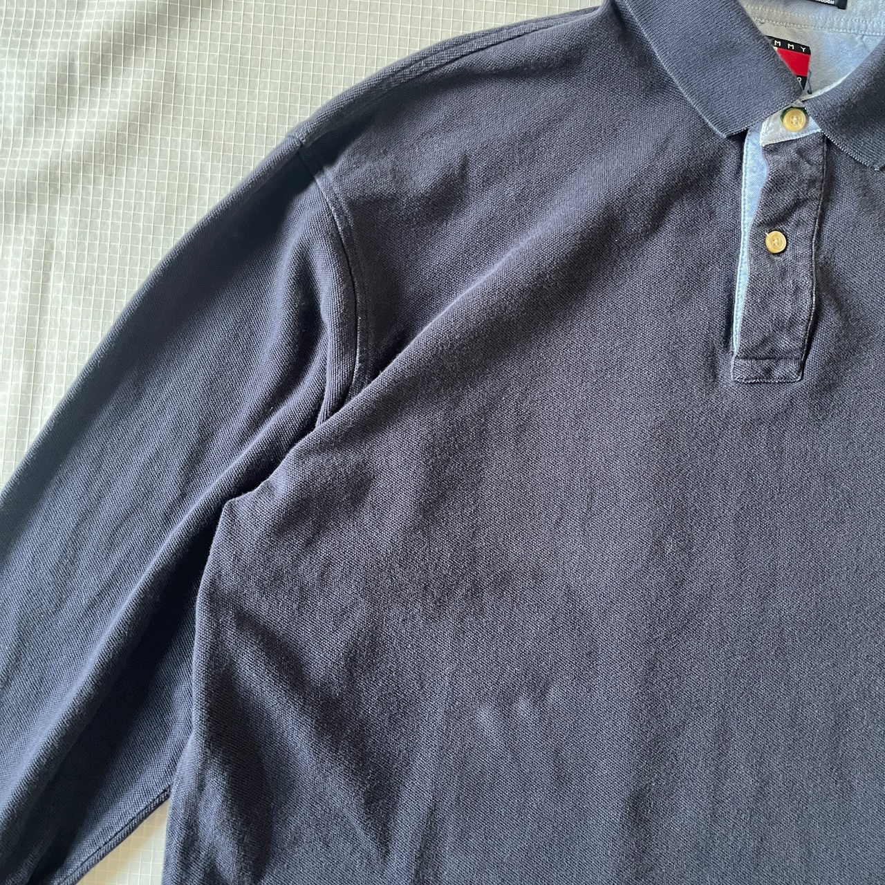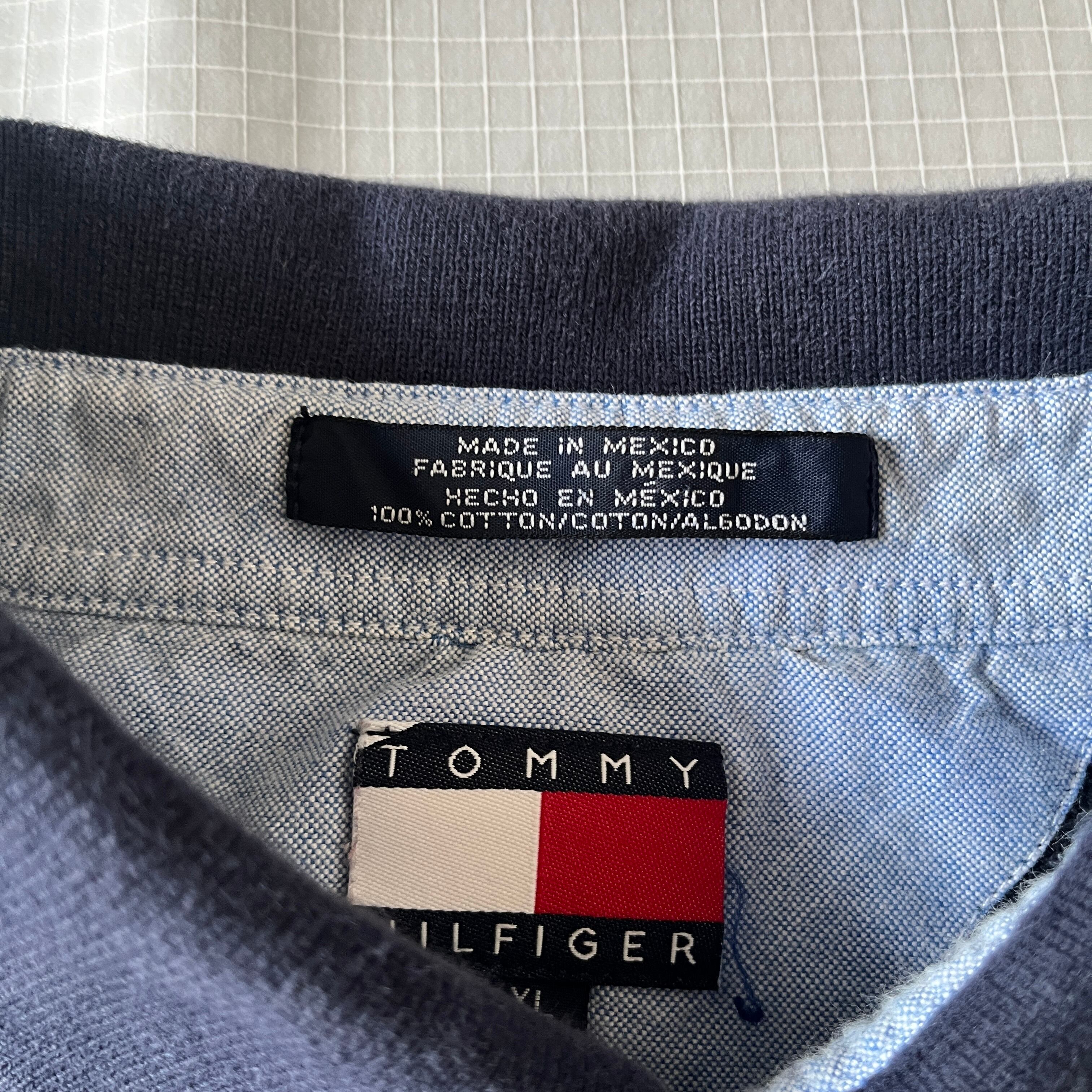 #TOMMYHILFIGER #トミーヒルフィガー #トミー #長袖ポロシャツ #ポロシャツ #ネイビー #XL #ビッグシルエット #オーバーサイズ #メキシコ製 #90s #アメカジ #プレッピー #古着 #バイカラー